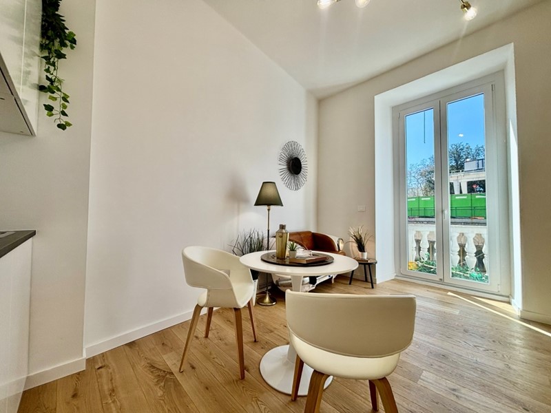 - zona giorno luminosa con angolo cottura, esposizione a sud e balcone con affaccio nel verde su Piazza Corvetto e sui Giardini dell’Acquasola