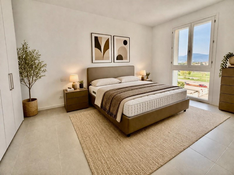 Appartamento di nuova costruzione al piano secondo e ultimo, con ingresso in piccolo condominio, composto da ampio soggiorno con angolo cottura e bella terrazza abitabile coperta, camera matrimoniale, grande sottotetto da poter utilizzare come ulteriore camera/studio, bagno, ripostiglio a piano terra e due posti auto esclusivi. Appartamento molto luminoso dotato di riscaldamento a pavimento - pannelli solari - predisposizione climatizzazione - predisposizione allarme – autoclave. Viene venduto completamente arredato come da foto. Si trova in una bella zona immersa nel verde a due passi da Pontedera e dalla FI-PI-LI, subito pronto e disponibile.