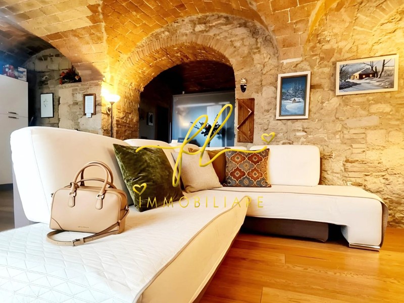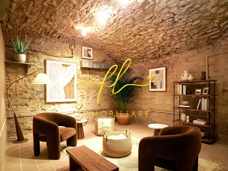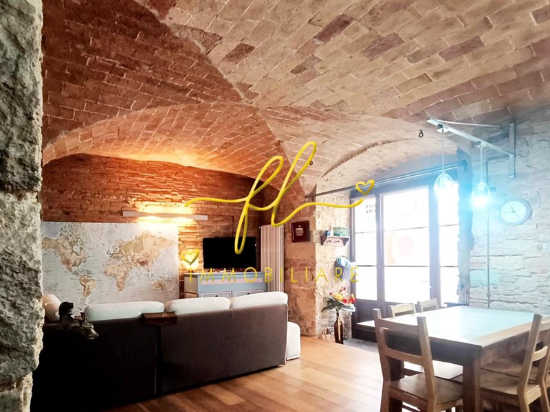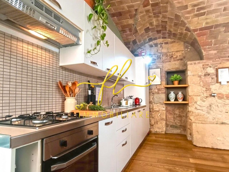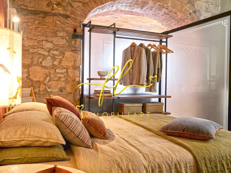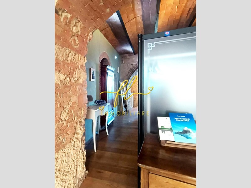 Le volte in mattoni originali e le pareti in pietra creano un’atmosfera calda e autentica, tipica delle dimore toscane più ricercate, mentre gli spazi si sviluppano in un open space armonioso, accogliente e di grande impatto visivo.