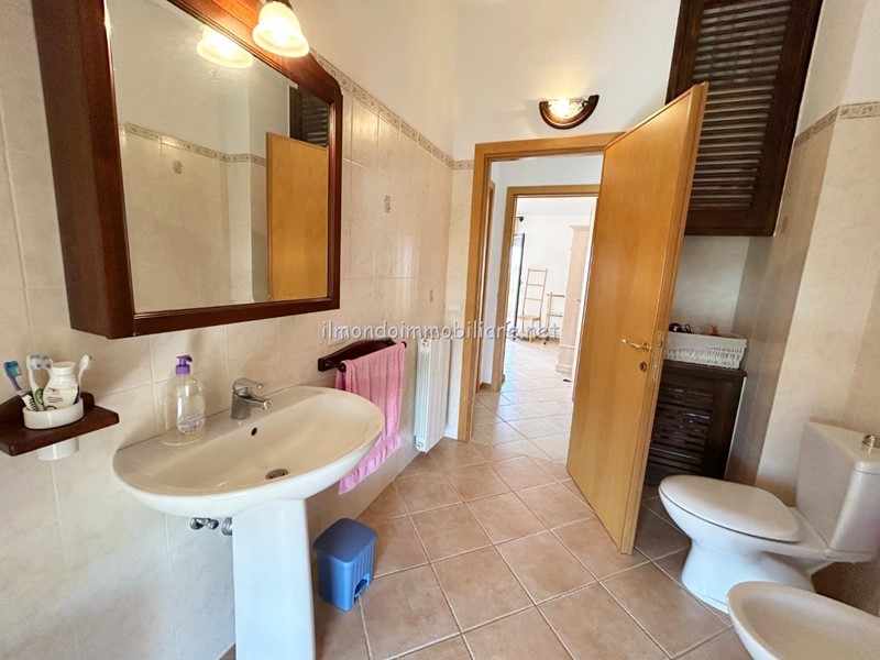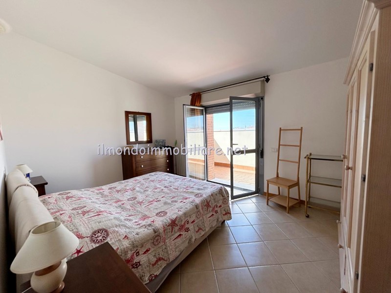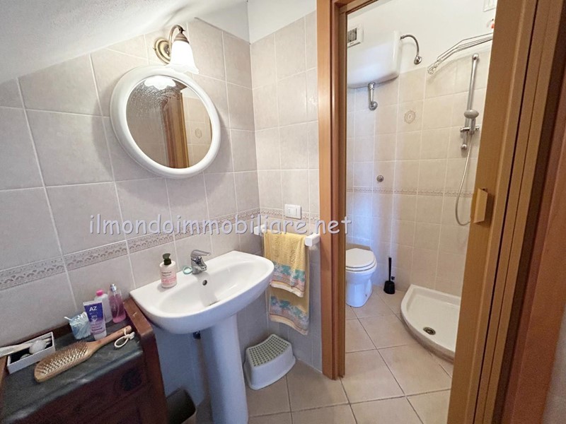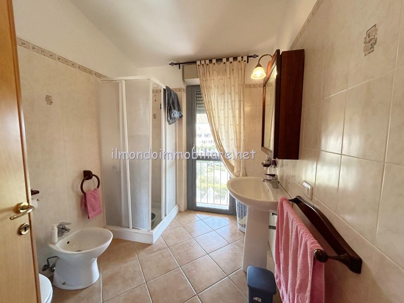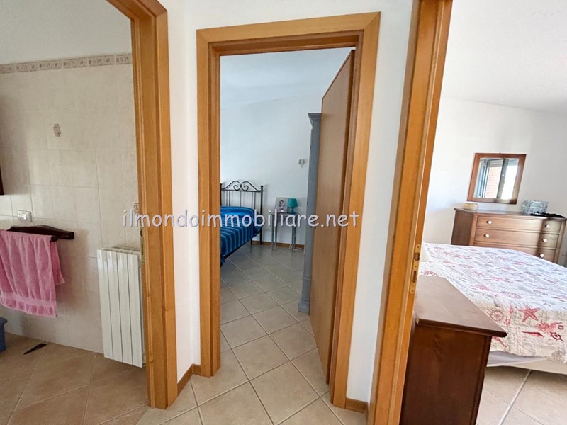 Ingresso indipendente direttamente dalla zona dei posti auto, balcone d'ingresso con ottima esposizione per godersi le serate al fresco estivo, salotto con divani, cucina separata con ampia porta finestra e loggia coperta ottima come lavanderia o ulteriore spazio esterno godibile, la doppia esposizione dell'appartamento e degli spazi esterni consente di usufruirne in ogni orario del giorno scegliendo quello più adatto alle esigenze familiari, bagno completo con doccia; tramite scala a giorno si accede al piano primo ed ultimo dove si trovano le due camere matrimoniali di cui una con ampia porta finestra ed una con terrazza " vista mare "!!! Bagno principale con porta finestra e cabina doccia.