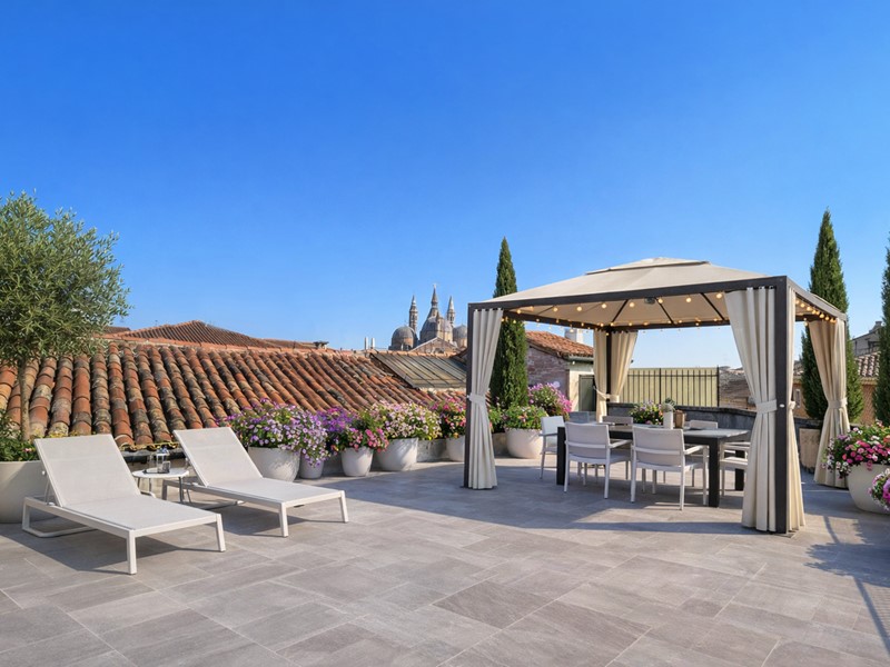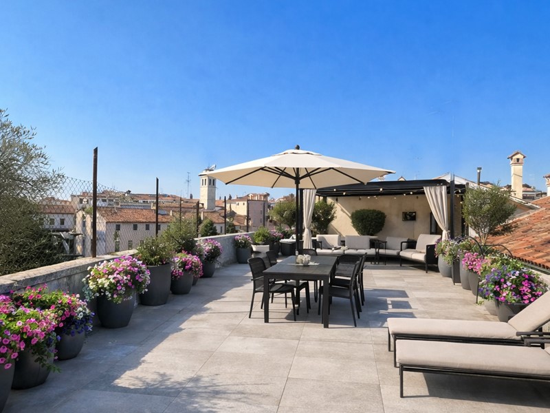 CENTRO zona Santo. Prestigioso attico caratterizzato da una grande terrazza con una vista di straordinario fascino sulla Basilica di Sant'Antonio, sulla Basilica di Santa Giustina, su Prato della Valle e sull'Orto Botanico: un panorama di raro pregio storico, artistico e paesaggistico. La distribuzione degli spazi è razionale e funzionale. L'abitazione si compone di un ingresso padronale, una luminosa zona giorno di oltre 34 mq, cucina separataabitabile, tre camere da letto, due bagni, disimpegno, locale lavanderia/ripostiglio, ulteriori spazi di servizio e una spettacolare terrazza panoramica di oltre 60 mq. L'unità è servita da ascensore con accesso diretto all'interno dell'appartamento, soluzione che assicura un elevato livello di comfort e riservatezza. È inoltre prevista la realizzazione di un soppalco nella zona living, raggiungibile tramite scala autoportante e pensato come area studio, progettato per ottimizzare gli spazi con particolare attenzione a funzionalità ed ergonomia. La struttura, in light steel frame, si integra armoniosamente con l'architettura esistente. Le finiture interne prevedono pavimenti in legno prefinito di rovere naturale, pareti tinteggiate di bianco con specifici trattamenti nelle zone bagno e cucina, battiscopa bianchi e bagni rifiniti con piastrelle di prima scelta e rivestimenti fino a 240 cm. L'appartamento sarà dotato di impianto di riscaldamento a pavimento con pompa di calore, climatizzazione canalizzata, ventilazione meccanica controllata ad alta efficienza, serramenti in legno ad alte prestazioni con vetrocamera, scuri in legno, velux motorizzati, portoncino blindato e porte interne di qualità. Classe prevista A4 -Le immagini presentano un allestimento di home staging virtuale.