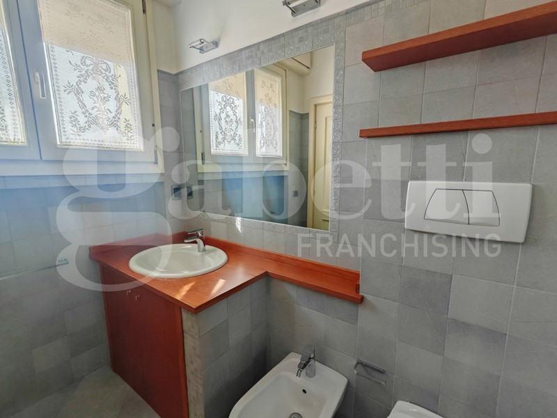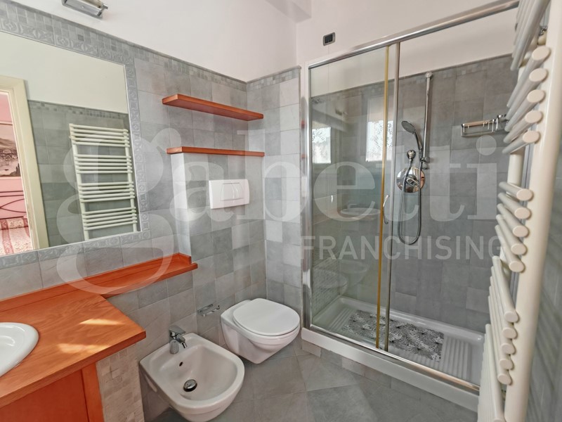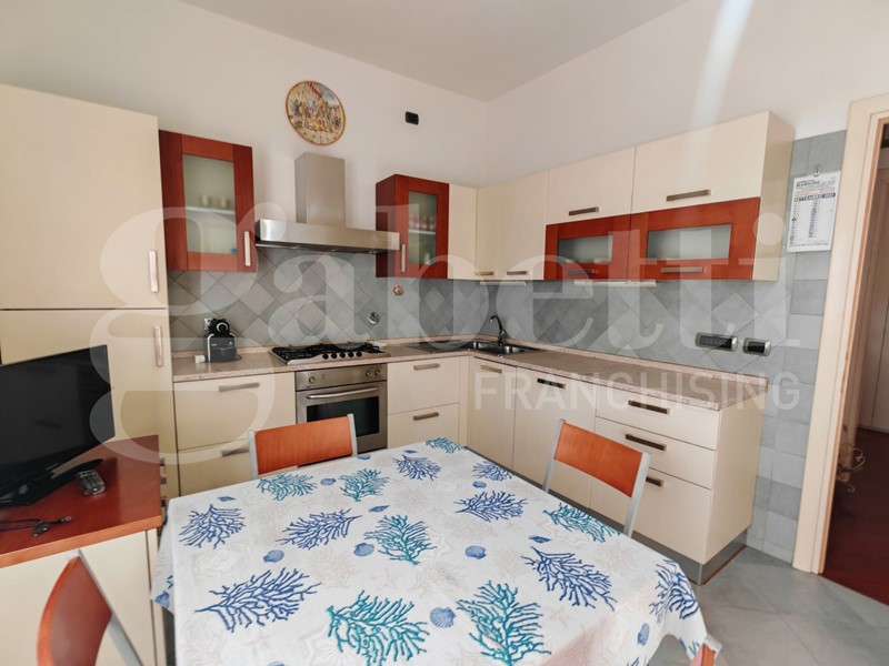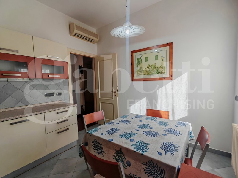 L'appartamento presenta un ampio ingresso che conduce a un luminoso soggiorno, perfetto per momenti di relax o per intrattenere gli ospiti. La cucina abitabile è funzionale e accogliente, ideale per preparare deliziosi pasti. La camera matrimoniale è dotata di un servizio privato e di un balcone che offre una vista incantevole, mentre la camera singola è perfetta per un familiare o come studio. Un ulteriore servizio e un pratico ripostiglio/lavanderia completano l'offerta.