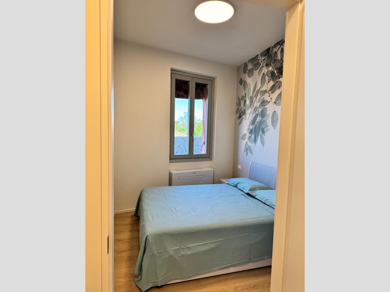 L’appartamento, al terzo ed ultimo piano con ascensore, è completamente arredato e dotato di aria condizionata e riscaldamento autonomo. Si compone di soggiorno con angolo cottura, due camere, bagno e ripostiglio/lavanderia.