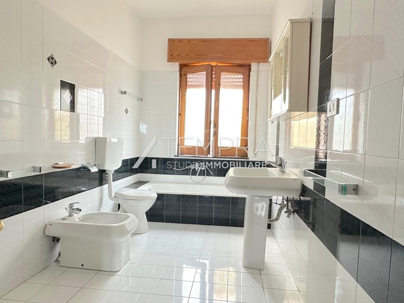 L’ingresso si apre su un importante salone di rappresentanza, ambiente ideale per accogliere ospiti o per essere reinterpretato come raffinato open space con cucina a vista. La distribuzione interna prosegue con una comoda cucina abitabile, una spaziosa camera da letto matrimoniale, due camerette, bagno principale, lavanderia/doppio servizio e un pratico ripostiglio.