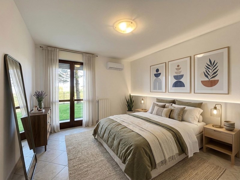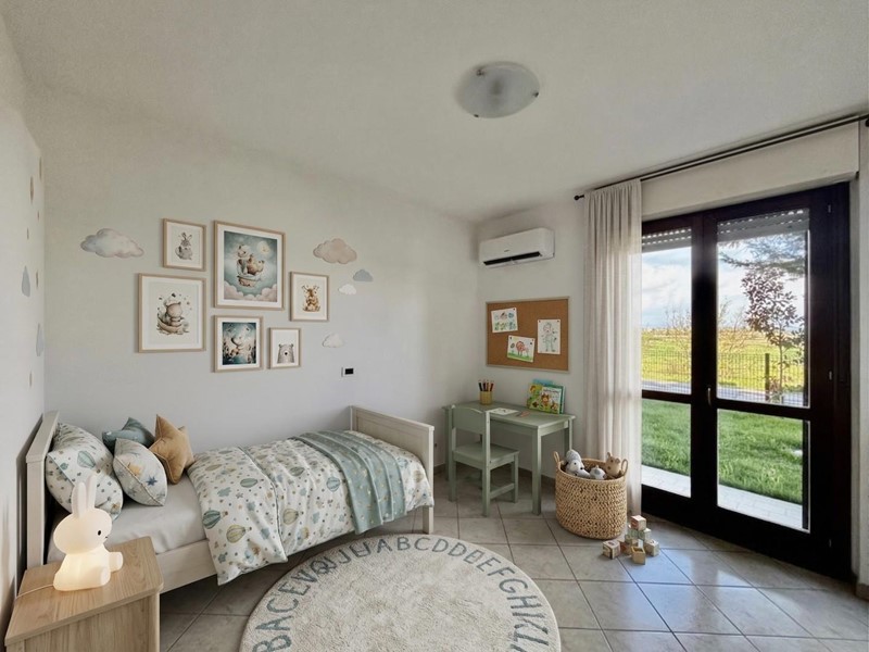 Composto da cucina-soggiorno con accesso dal resede d’ingresso, camera matrimoniale e camera media, entrambe con affaccio sul giardino sul retro, oltre a bagno con doccia e aspirazione.