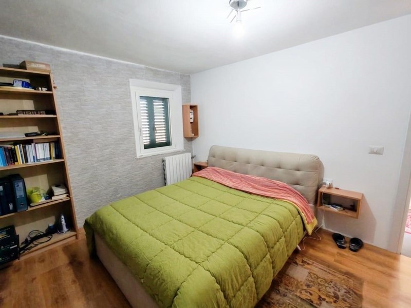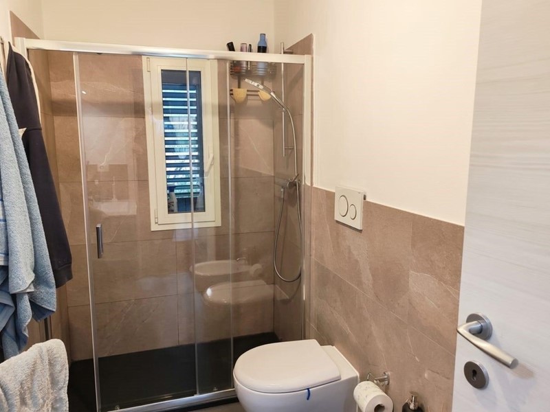 La zona notte prosegue con un'ampia camera matrimoniale, mentre il bagno, completamente nuovo, è dotato di finestra e finiture contemporanee.