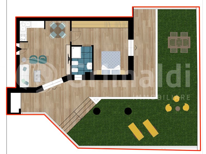DISPONIAMO DI UN BILOCALE con TERRAZZO e GIARDINO PRIVATO al prezzo di Euro 303.000,00, corredato da finiture eleganti ed esclusive, con infissi in legno laccato "Dear", pavimenti e rivestimenti in gres porcellanato "Energie Ker", esterni arricchiti con cristalli e fioriere in cemento bianco, impianti firmati da grandi e storici marchi quali "BTicino" e "Ideal Standard".
