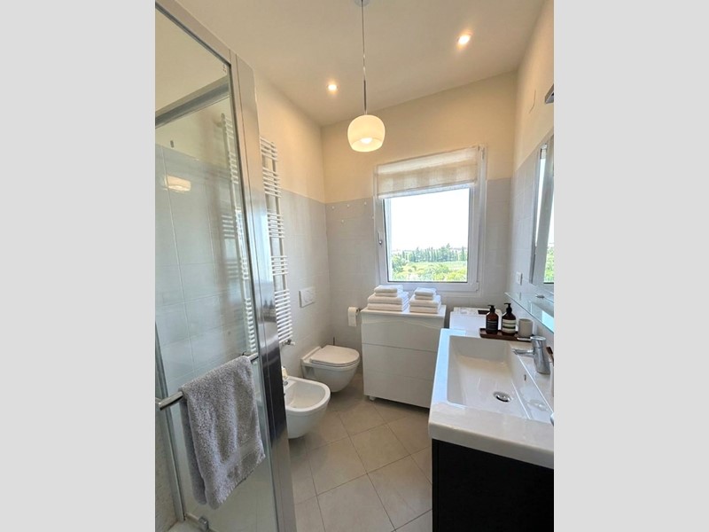 Bologna - Borgo Panigale - Via Bragaglia: In splendido contesto di recente costruzione (2012) circondato da parco pubblico e con tutti i servizi a portata di mano. Appartamento di 87 mq sito al quinto piano con ascensore ( doppia esposizione SUD-OVEST) , composto da ingresso su soggiorno spazioso e accogliente, cucinotto, ampia loggia, camera matrimoniale, camera singola e doppi servizi entrambi finestrati. Zanzariere e tapparelle elettriche in ogni finestra. Riscaldamento, raffrescamento e acqua centralizzati con ripartizione dei consumi. Garage di 14 mq. Cantina di 7 mq. Euro 389000. Libero da Aprile 2027. Classe energetica A1.