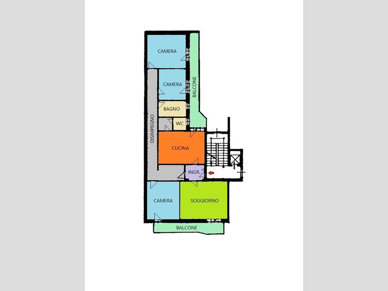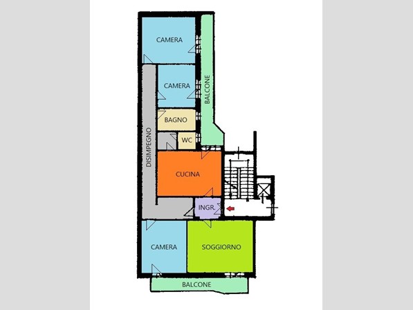 L'APPARTAMENTO SI COMPONE DI INGRESSO, SOGGIORNO, CUCINA ABITABILE, 3 CAMERE DA LETTO, DOPPI SERVIZI, BALCONE ANTERIORE E POSTERIORE. COMPLETA LA PROPRIETA' UN BOX AUTO PRIVATO NEL CORTILE CONDOMINIALE.