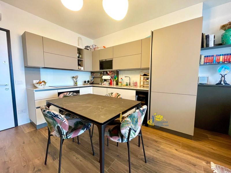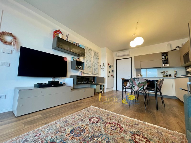 TRILOCALE NUOVA COSTRUZIONE 2023 – CLASSE A4 – AMPIO TERRAZZO + GARAGE. In contesto residenziale recente e curato, proponiamo, al QUARTO PIANO con ascensore, trilocale di nuova costruzione (anno 2023), caratterizzato da elevata efficienza energetica (classe A4), ambienti luminosi, finiture moderne e design contemporaneo. L’appartamento si sviluppa con una distribuzione funzionale e attuale: soggiorno con cucina a vista (open space), accesso diretto alla loggia/terrazzo abitabile con vista panoramica. Due camere da letto, due bagni finestrati con finiture extra-capitolato, disimpegno attrezzato con zona lavanderia. Fotovoltaico con 2,8 kW. Dotato di cantina, e con possibilità garage. Richiesta: euro 349.000 + 22.000 euro per l'ampio garage singolo. Libero a 8 mesi dal compromesso. Per info: BURO' IMMOBILIARE 328.3194523