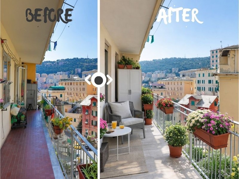 Punto di forza dell’appartamento è la lunga balconata che abbraccia tutta la casa, garantendo luce naturale e uno splendido affaccio aperto.