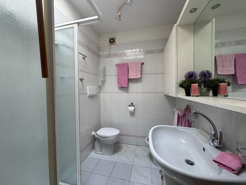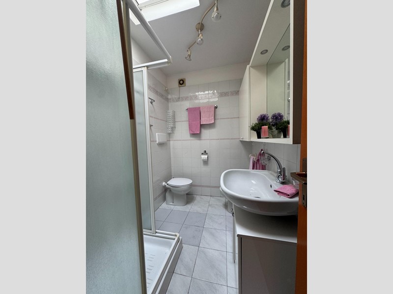 La zona notte, ben distribuita tramite disimpegno, comprende una camera di comode dimensioni, di cui con balcone privato, un vano armadi attualmente adibito a cameretta, un pratico ripostiglio utilizzabile anche come dispensa ed un bagno finestrato con doccia e velux.