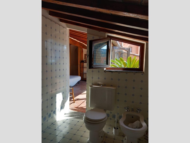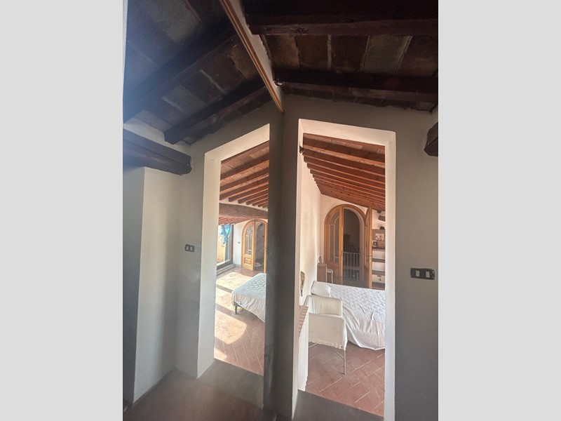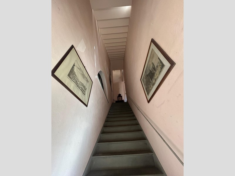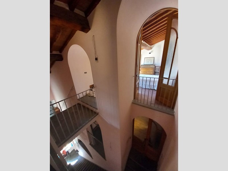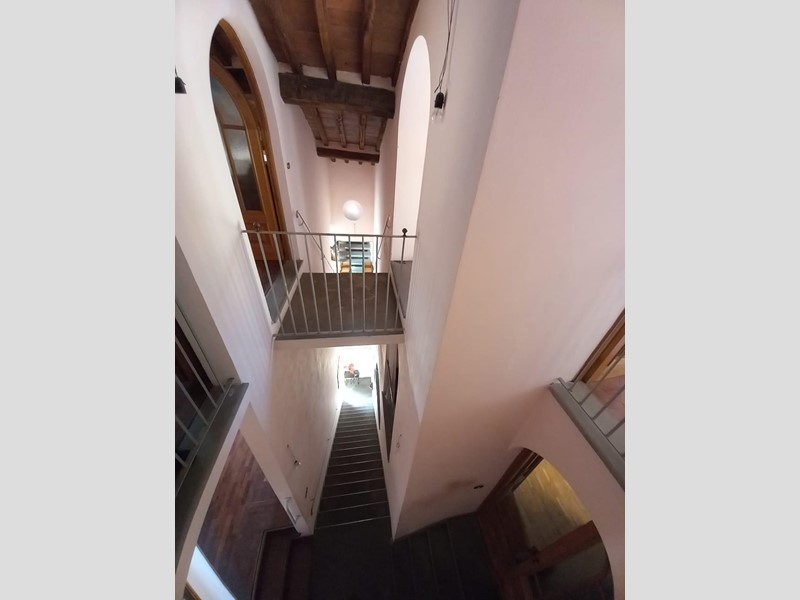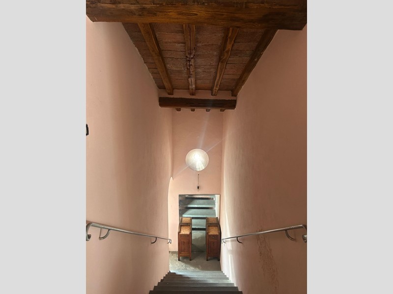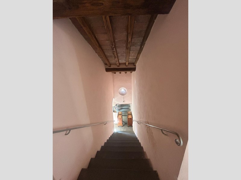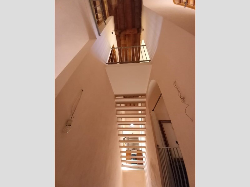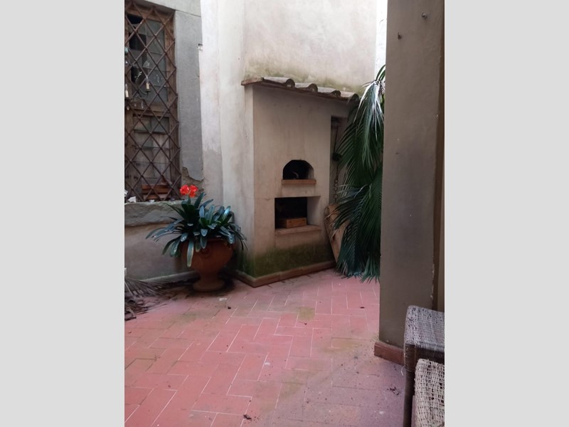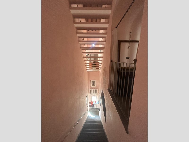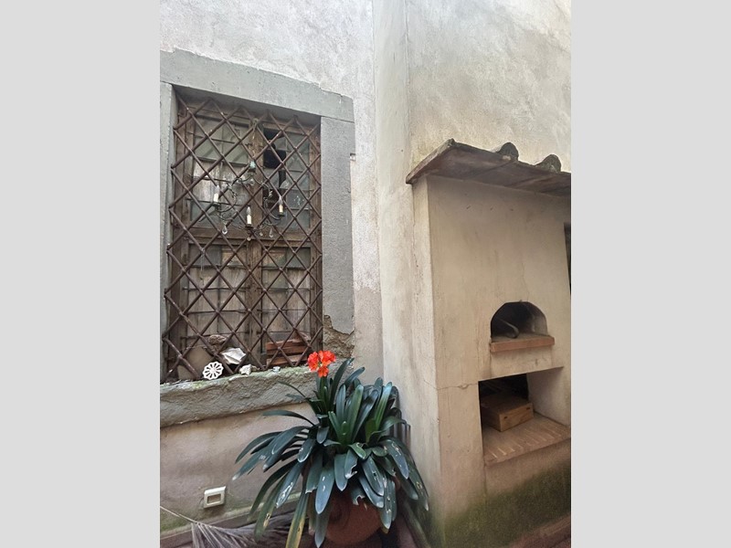 La proprietà indipendente terra/cielo senza condominio comprende una superficie di poco meno di 300 mq, disposta su tre livelli oltre ad un secondo accesso indipendente dal fondo del piano terra, accatastato come fondo commerciale pluriuso c1; salendo una rampa di scale si accede al primo piano dove si trovano un salone con alto soffitto, camino in pietra serena e poi un’ampia sala da pranzo con un secondo camino incastonato in un muro medievale con pietra a vista e soffitto a travicelli. Al secondo e terzo piano le zone notte disposte in stanze di varia metratura con ampia possibilità di articolazione e intervento architettonico, all’ultimissimo piano un piccolo appartamento notte si apre su una terrazza a tasca sui tetti della piazza. In tutto 13 ambienti, 6 bagni, una terrazza con vista tipica sui tetti, una chiostra interna con un forno a legna, due caminetti (di cui uno nel salone e l’altro nella sala da pranzo incastonato in un muro medievale a vista).