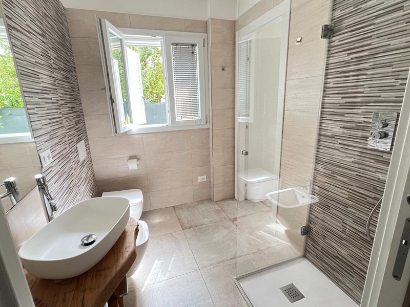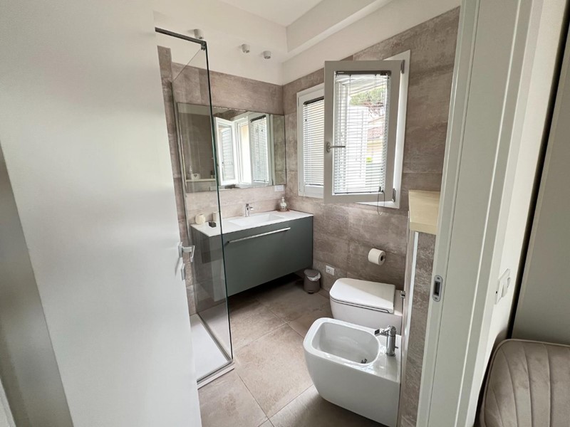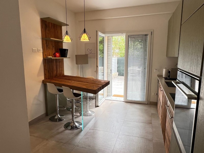 Cinquale, sul Confine con Forte dei Marmi (Vittoria Apuana) e a 450 metri dalle Spiagge, Vendesi Splendido Appartamento al Piano Terra di Recente Costruzione, Libero su 3 Lati e Circondato da un Ampio Giardino Privato. Ingresso su Confortevole Salotto con Camino Elettrico, Cucina Abitabile con Accesso a Comoda Veranda Pranzabile. Zona Notte Composta da 2 Camere Matrimoniali entrambe con Bagno Privato con Doccia e Finestra. Uno dei 2 Bagni ha un Doppio Accesso: da una delle 2 Camere da Letto e dal Soggiorno Tramite Comoda Lavanderia. Parcheggio Interno con Cancello Elettrico. Vetri Tripli. Condizionatori. Allarme. Classe Energetica A3.