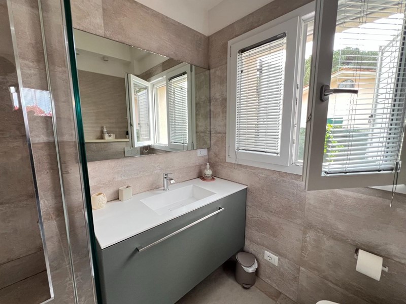 Cinquale, sul Confine con Forte dei Marmi (Vittoria Apuana) e a 450 metri dalle Spiagge, Vendesi Splendido Appartamento al Piano Terra di Recente Costruzione, Libero su 3 Lati e Circondato da un Ampio Giardino Privato. Ingresso su Confortevole Salotto con Camino Elettrico, Cucina Abitabile con Accesso a Comoda Veranda Pranzabile. Zona Notte Composta da 2 Camere Matrimoniali entrambe con Bagno Privato con Doccia e Finestra. Uno dei 2 Bagni ha un Doppio Accesso: da una delle 2 Camere da Letto e dal Soggiorno Tramite Comoda Lavanderia. Parcheggio Interno con Cancello Elettrico. Vetri Tripli. Condizionatori. Allarme. Classe Energetica A3.