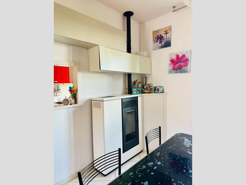 Vendesi in piccola palazzina di sole cinque unità abitative un appartamento completamente ristrutturato al primo piano libero su tre lati. La zona giorno si compone di una cucina abitabile con terrazza, un grande soggiorno con terrazza suddiviso in due zone ben definite, la zona pranzo adiacente alla cucina e la zona relax con un bel caminetto. Il reparto notte, invece, si compone di una camera matrimoniale, una seconda camera e un bagno con doccia finestrato. Impianto di riscaldamento autonomo a metano. Impianto con idrostufa a pellets per il riscaldamento. Infissi in alluminio e zanzariere . Garage, cantina e spazio a verde di circa 200 mq con punto corrente e acqua. Classe energetica: E - Rif. GA440