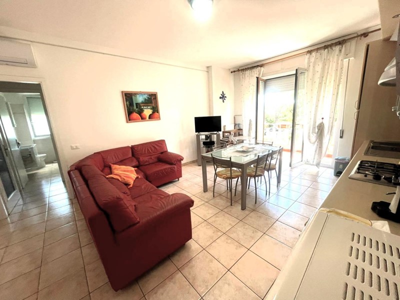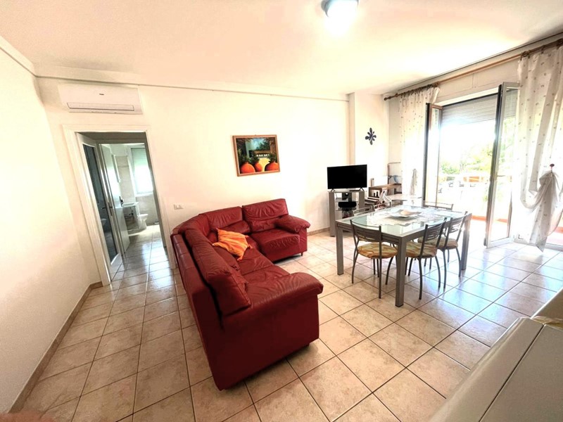 Ronchi, a ca 500 metri dal mare, in esclusiva, in una zona particolarmente tranquilla e vicino a tutti i servizi, appartamento immerso nel verde situato al piano primo di un condominio ben tenuto, e si presenta in ottime condizioni già ammobiliato pronto per essere vissuto. L’ingresso si apre in un luminoso ed ampio soggiorno con angolo cottura che si affaccia su un terrazzo. La zona notte, ben distribuita tramite disimpegno, comprende, una spaziosa camera matrimoniale, una seconda camera con due letti singoli, un'eventuale terza cameretta (cieca) attrezzata con letti a castello, perfetta per ospiti o bambini, un bagno moderno e curato. L’appartamento è dotato di aria condizionata , e si presta facimente alla realizzazione di un altro bagno.