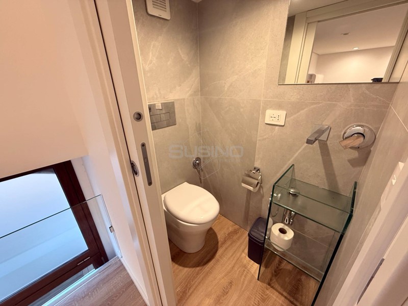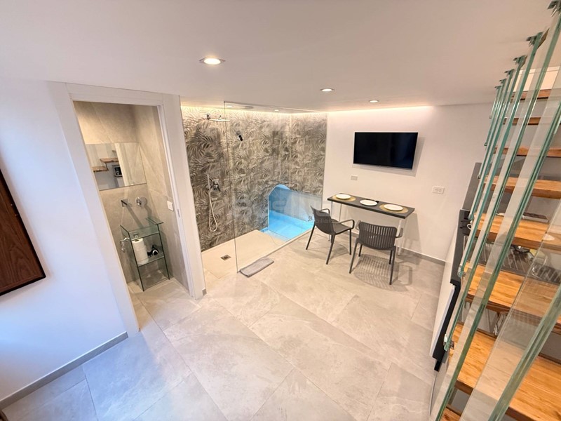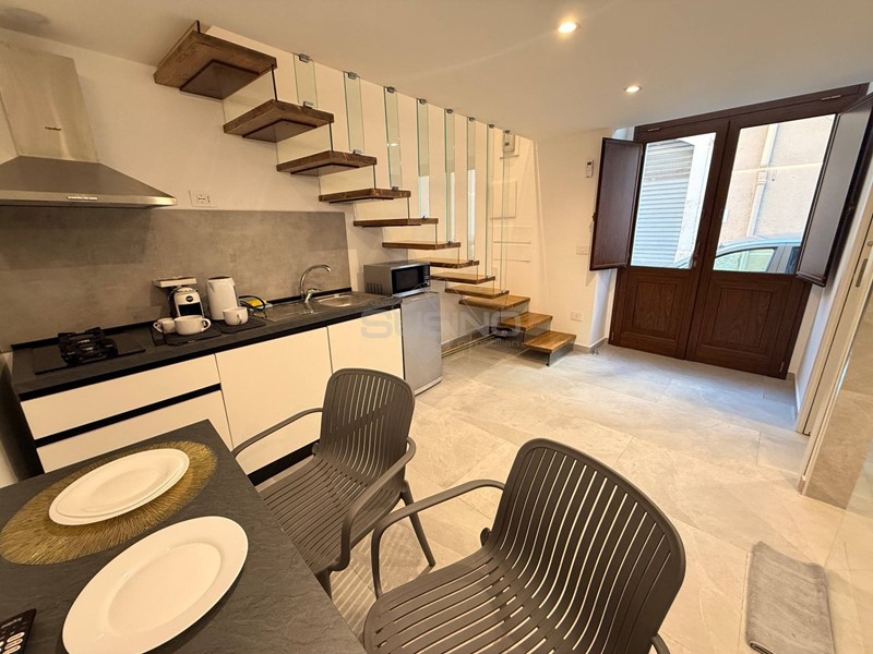 L'appartamento è composto da una zona giorno con angolo cottura a vista e un bagno al piano, a seguire unelegante scala funzionale conduce al piano superiore dove è stato ricavato un soppalco dedicato alla zona notte composto da una camera da letto ed un secondo bagno.