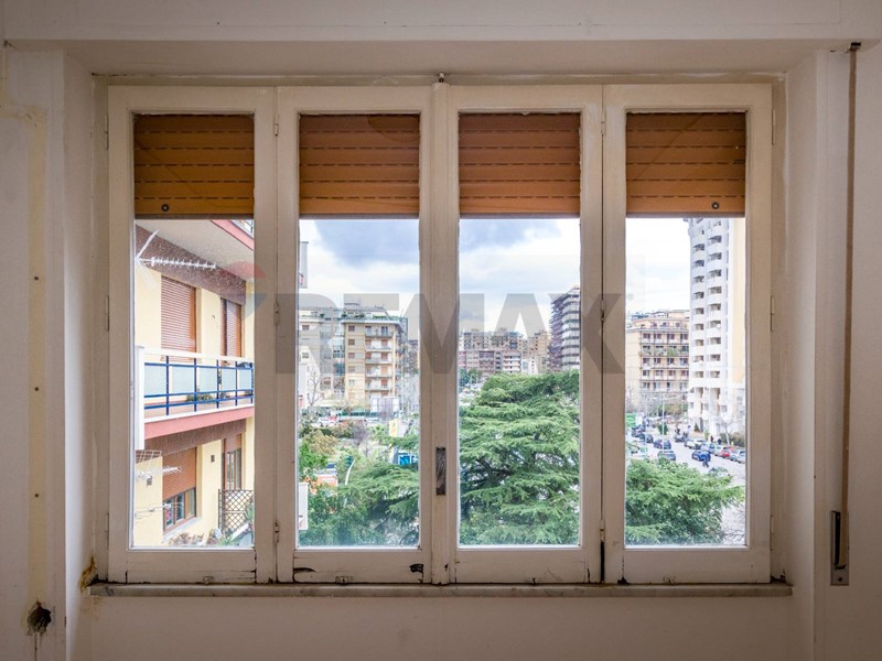 Alla destra si apre il grande salone, al momento diviso in tre ampie stanze, servito da grandi finestre che garantiscono all'ambiente luce naturale e aria per tutto il giorno. Dal salone si accede ad un comodo balcone che si affaccia in parte su via Boris Giuliano e in parte su Viale Campania.
