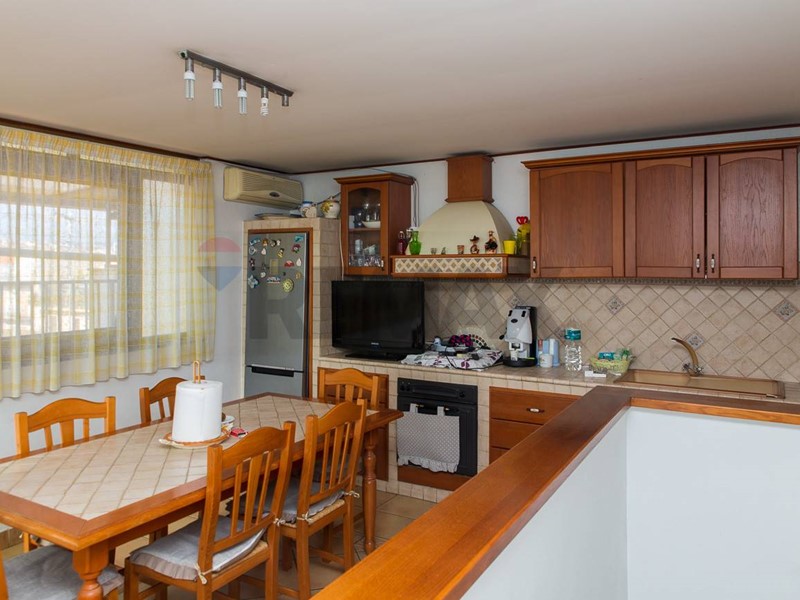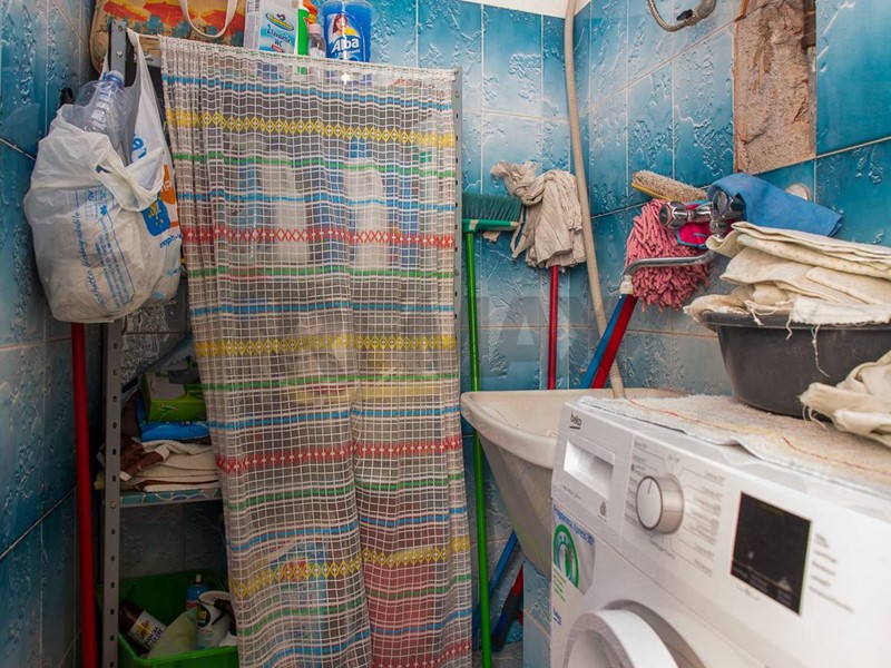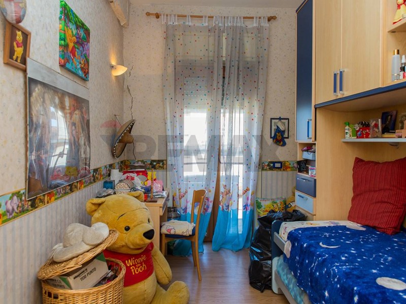 La superficie totale è di 96 mq, distribuiti in: un luminoso soggiorno, due spaziose camere da letto ed una cameretta (tutte balconate), ed il primo bagno, al primo piano; in più troviamo altri 50 mq al piano superiore, comprendenti la cucina, un altro bagno/lavanderia, e lo splendido terrazzo con vista sul mare e su tutta la città.