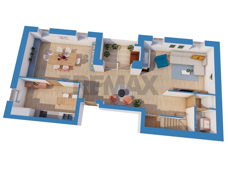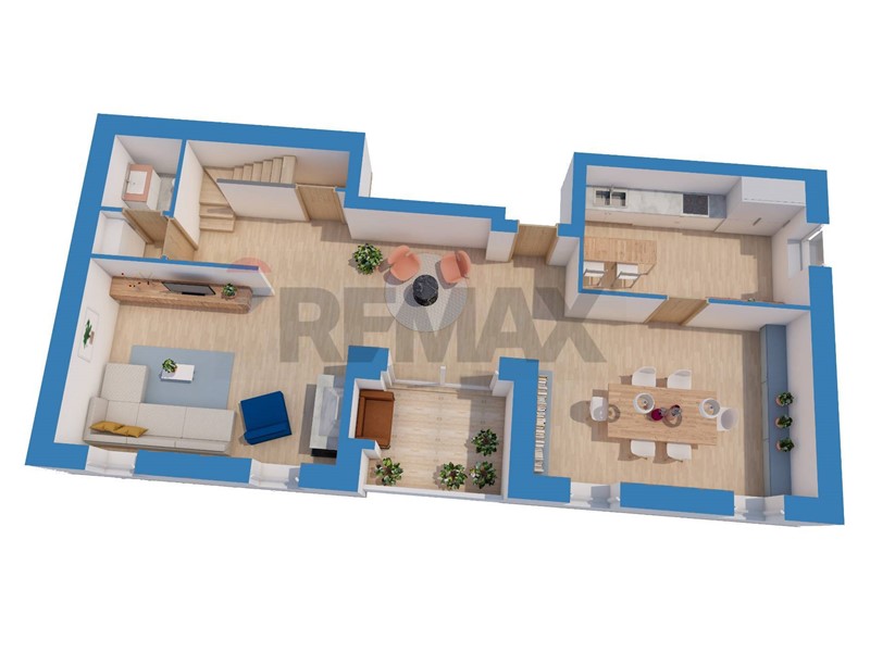 L'ampio salone è caratterizzato da soffitti ben rifiniti e da grandi vetrate che permettono una generosa quantità di luce naturale. La cucina separata dalla sala da pranzo è un ottimo spazio completamente personalizzabile.