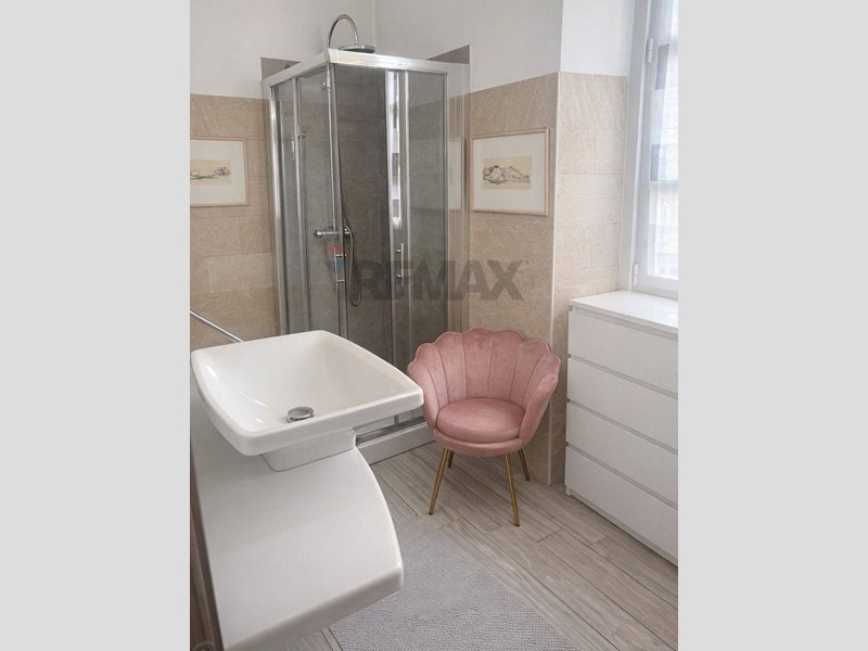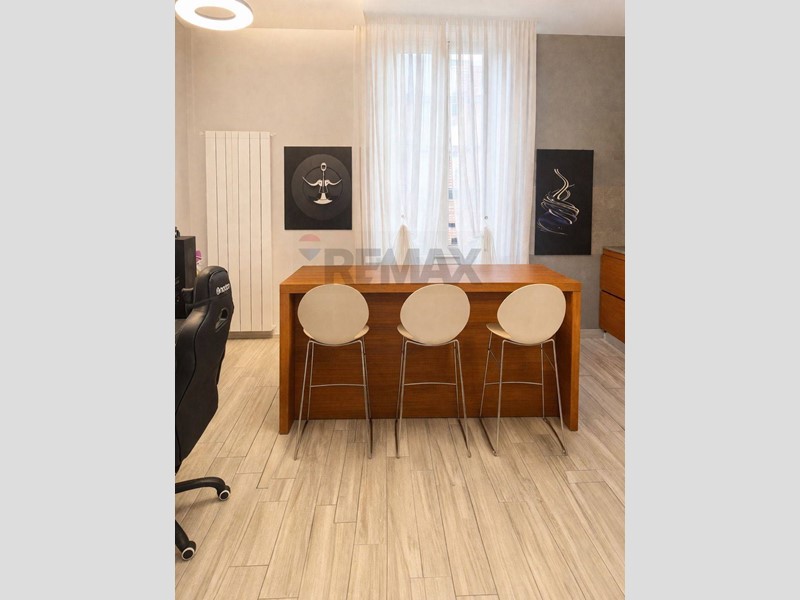 Gli arredi, caratterizzati da un design sobrio e contemporaneo, si integrano perfettamente in spazi ottimizzati dalla presenza di armadi a muro e ripostigli strategici. Pur in assenza di ascensore, l'accesso è agevolato da una scala condominiale larga e con gradini bassi, studiata per una salita comoda e poco faticosa.