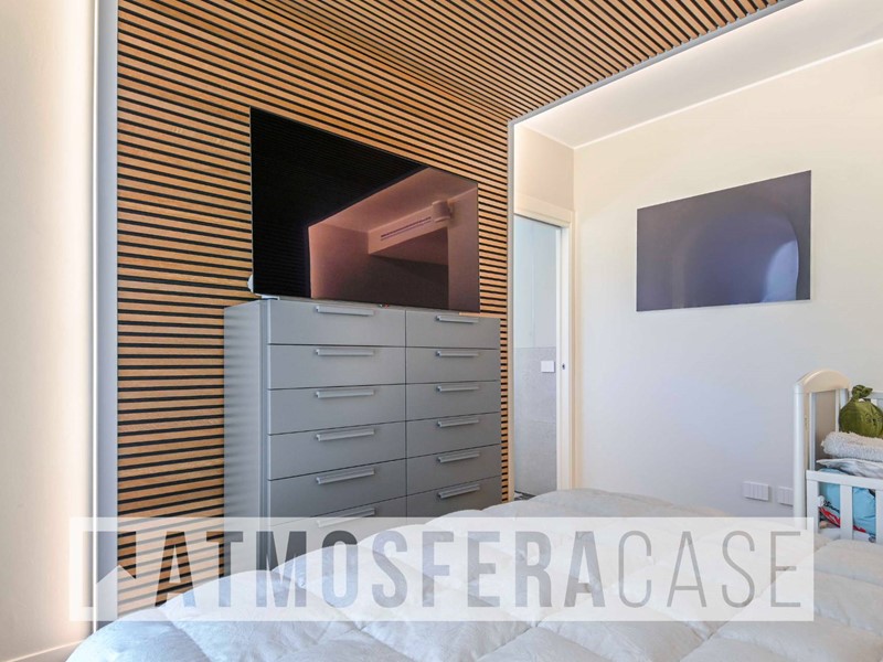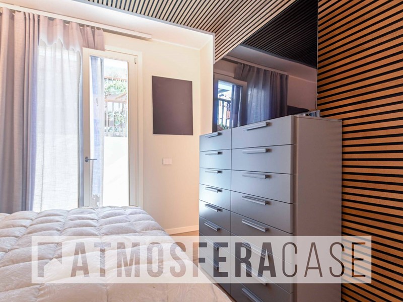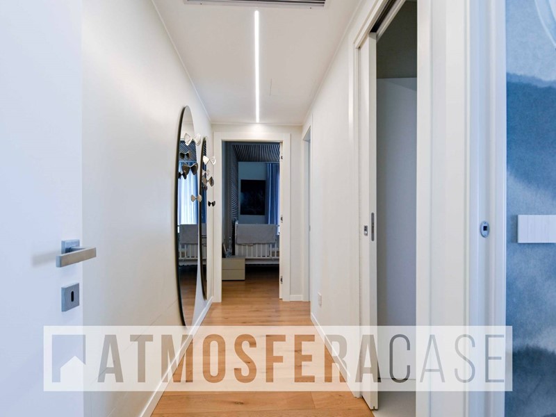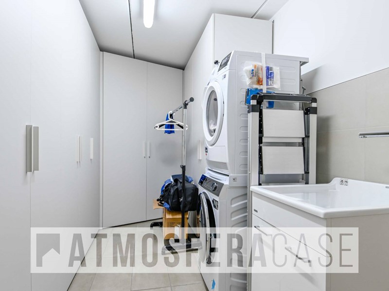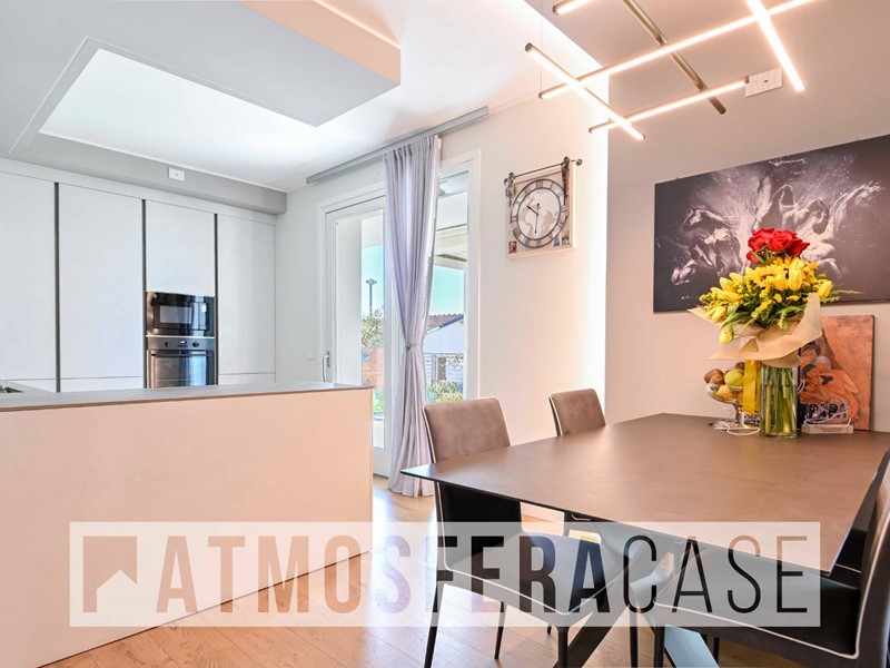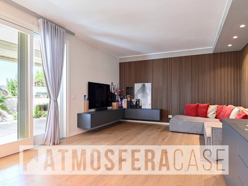 La soluzione internamente è così suddivisa: ingresso su ampia e luminosissima zona giorno a living con cucina a vista di design ed accesso diretto alla strepitosa area esterna coperta da comodo porticato con tenda bioclimatica, ideale per godersi momenti in compagnia all'aperto.