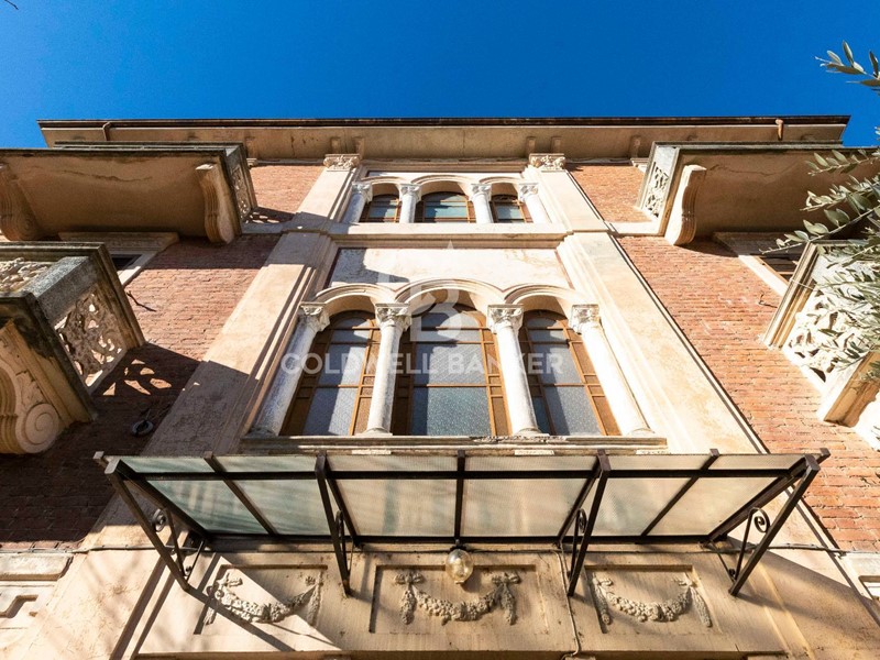 La meravigliosa facciata storica, caratterizzata da eleganti finestre a tre archi ed arricchita da decorazioni in pietra, rende il complesso di sorprendente impatto.
