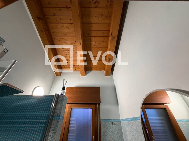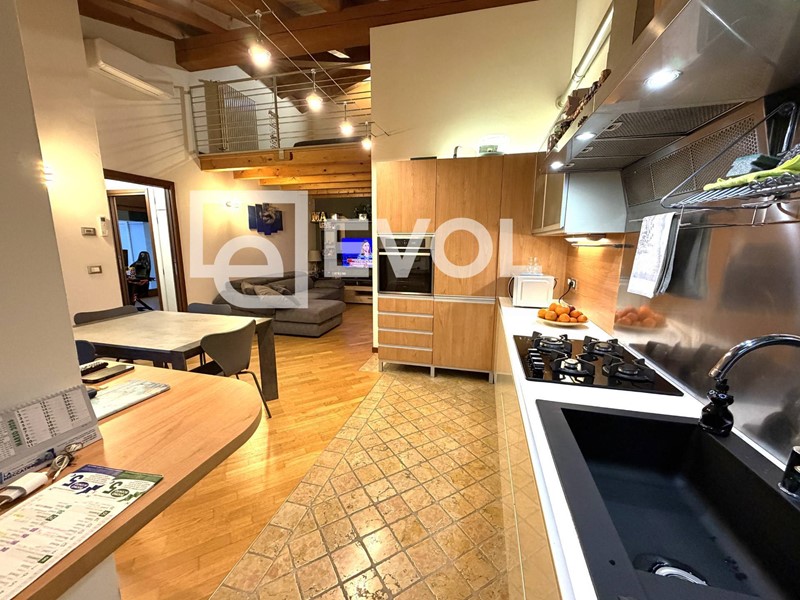Nella zona giorno trova spazio una scala che conduce al suggestivo soppalco affacciato sul living, valorizzato da una piacevole luminosità naturale grazie alle finestre.