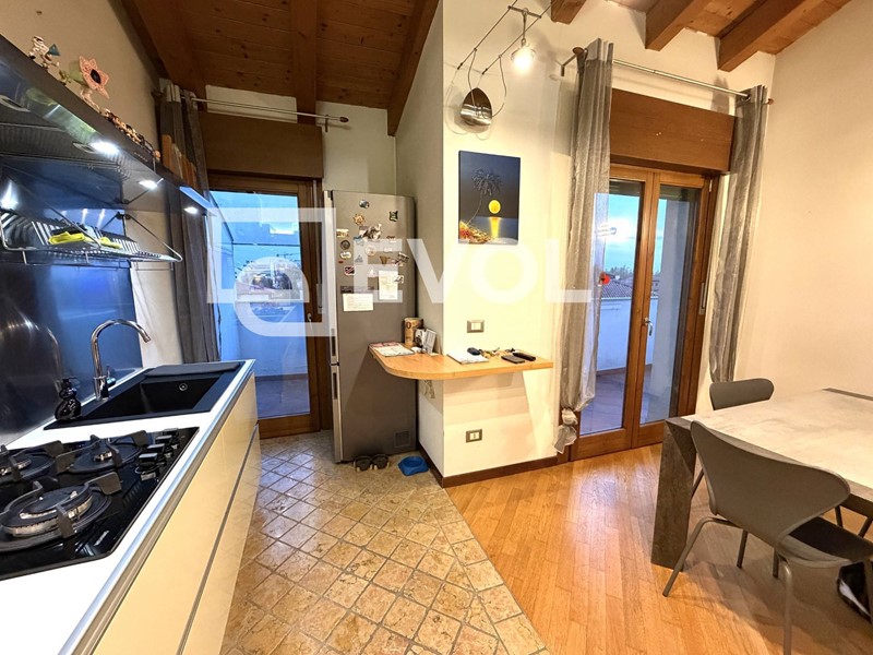 Lingresso si apre su unampia e luminosa zona open space, caratterizzata da unaccogliente area salotto con zona TV, cucina a vista e spaziosa zona pranzo. Da qui si accede a un terrazzo e a un ulteriore balcone attrezzato con lavandino mobile con possibilità di mettere una lavatrice e spazio ideale per una griglia.