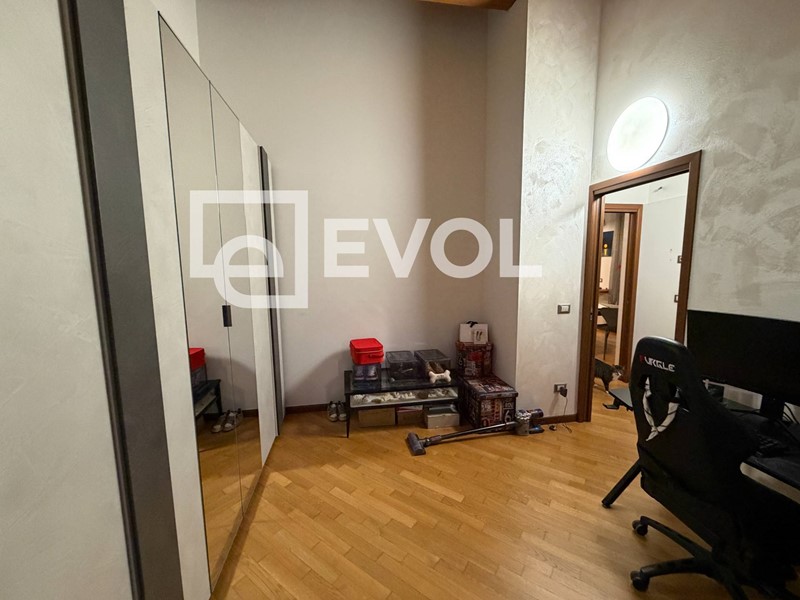 Un comodo disimpegno conduce alla zona notte, composta da una camera matrimoniale, uno studio (utilizzabile anche come seconda camera o stanza stireria) e un bagno.