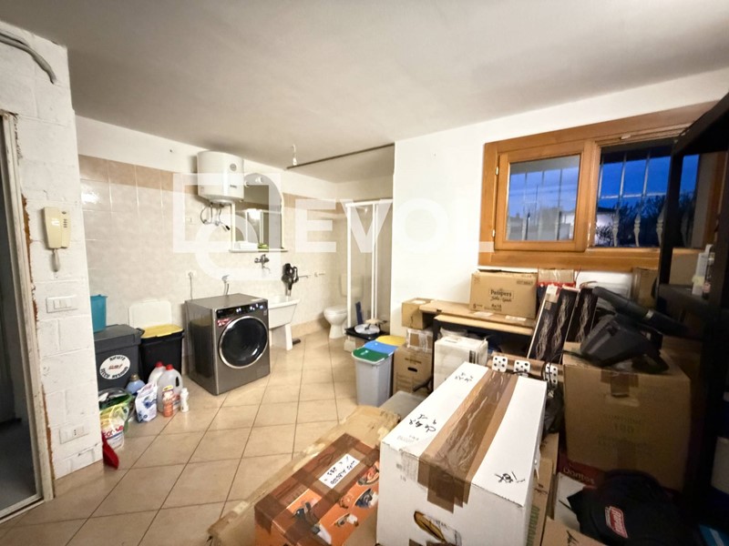 Completano la proprietà una spaziosa cantina, dove trovano posto un bagno con doccia e una zona lavanderia, collegata direttamente al vano scale e al garage. Presenti inoltre due posti auto: uno adiacente al garage e uno allingresso della proprietà condominiale.