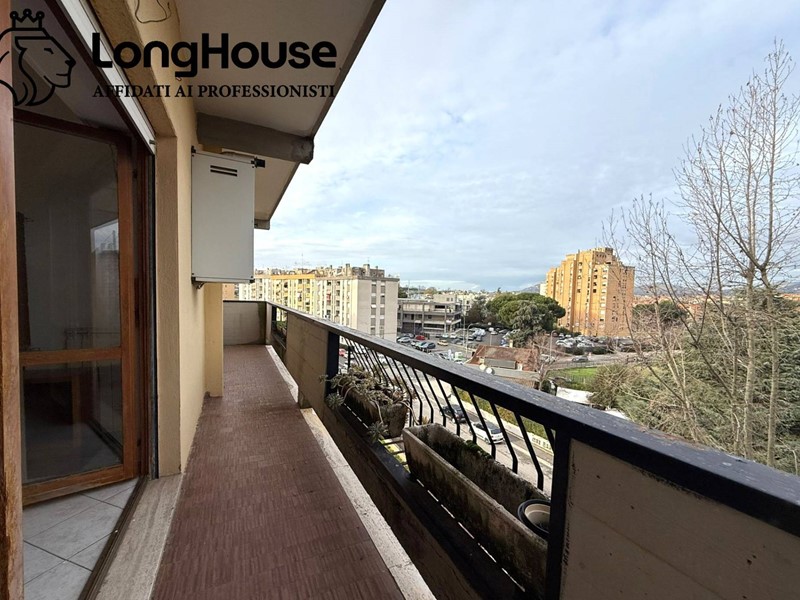 Ampio salone, angolo cottura, disimpegno, due camere da letto, doppi servizi finestrati uno con vasca ed uno con doccia, due balconi.