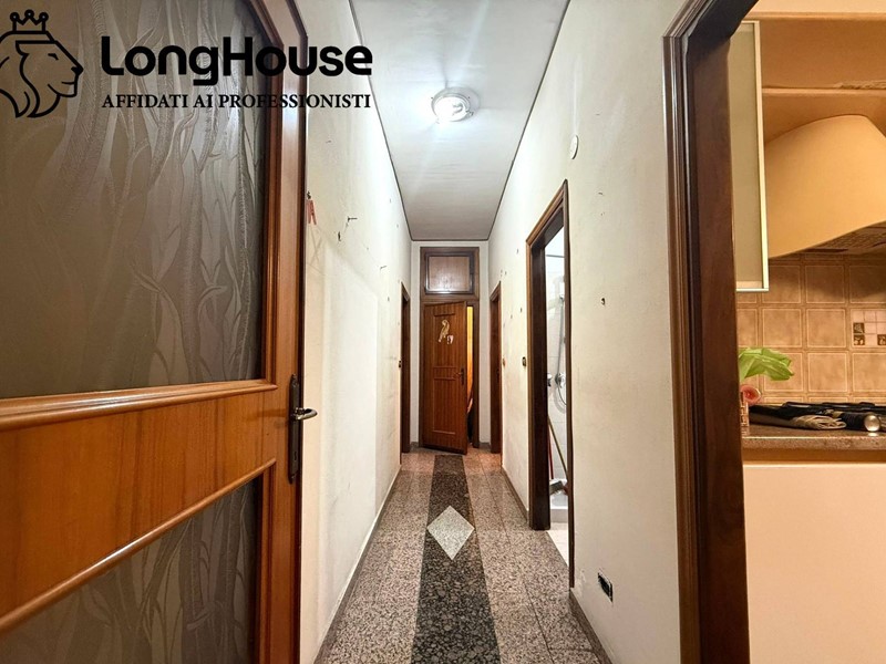 Ingresso, salone, cucina separata abitabile, corridoio, due camere da letto, bagno finestrato con doccia e ripostiglio.