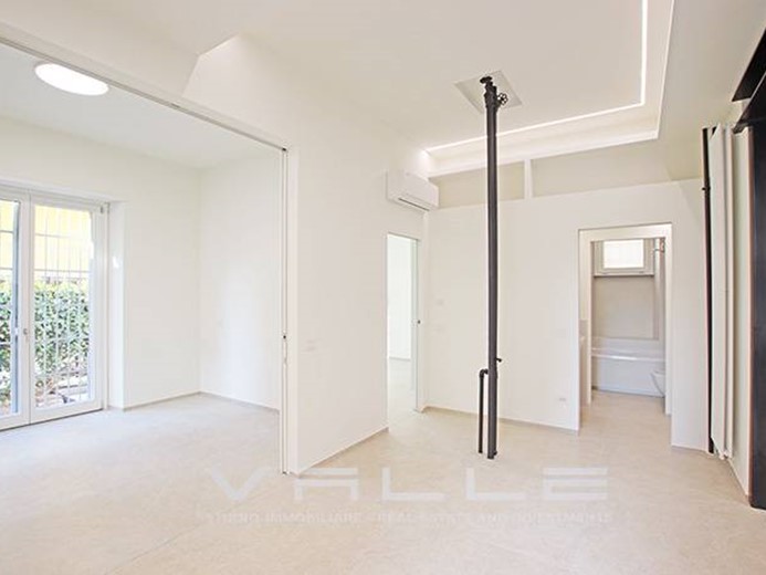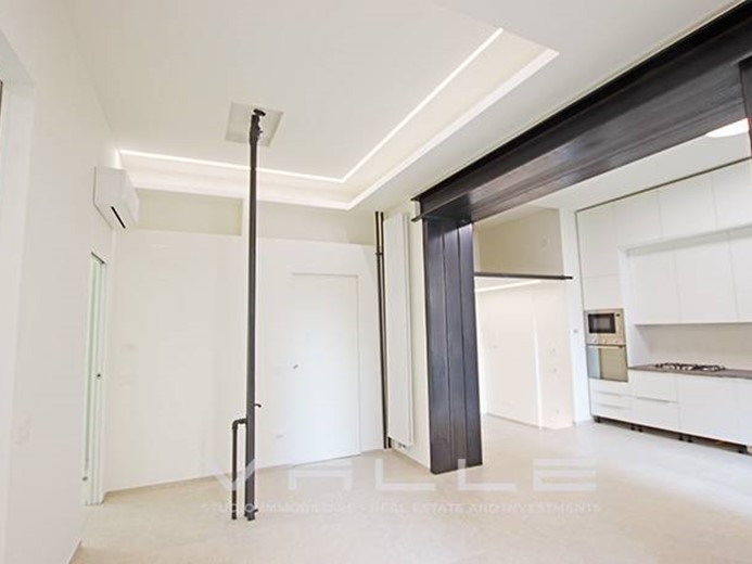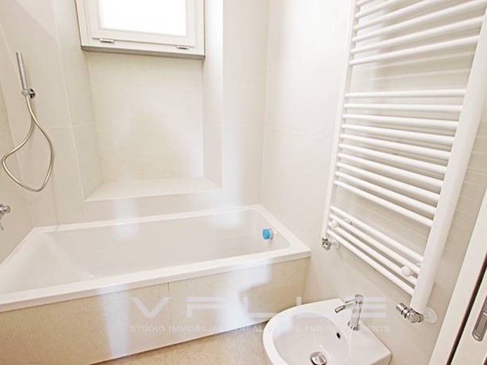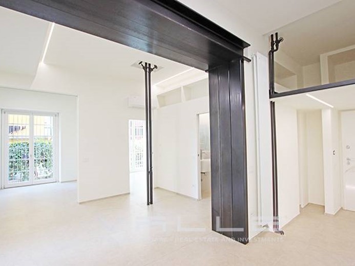 L'appartamento è stato completamente ristrutturato a nuovo dotato di riscaldamento centralizzato contabilizzato, aria condizionata con pompa di calore, tapparelle elettriche, sistemi anti intrusione, pavimentazioni in moderno gres di grande formato, dettagli di design quali putrelle in ferro a vista, velette e controsoffittature con illuminazione diffusa.