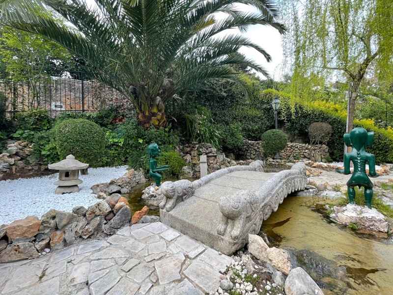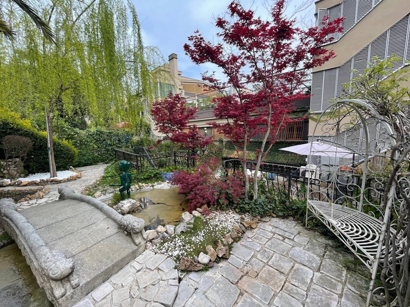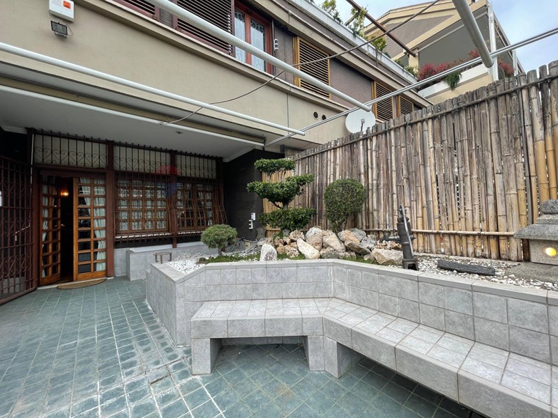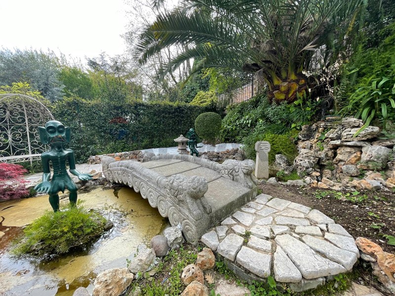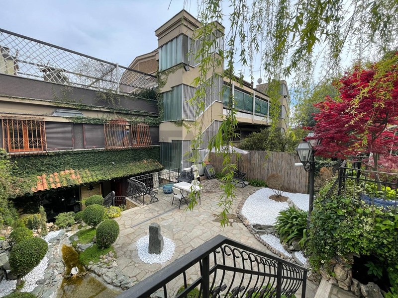 Immersa nel verde della collina Benito Juarez, all'interno di un elegante condominio con campo da tennis e piscina, lussuosa ed esclusiva soluzione di circa 220 mq su due livelli. Al primo piano troviamo un elegante salone doppio con camino, una sala da pranzo, una cucina e un bagno. Due ampie vetrate antiproiettile si affacciano su un prestigioso terrazzo di 63 mq (EST) e su un giardino orientale di 132 mq (OVEST) strutturato su 3 livelli, interamente arricchito da giochi dacqua, cascatelle, piccoli stagni , il tutto arredato da un ponte e lampade, entrambi in granito originali dal Giappone del diciannovesimo secolo. Attraverso una scala si accede al secondo piano composto da ampia camera matrimoniale, due camere, doppi servizi. L'appartamento è abbellito da ampie finestre e porte con vetrate artistiche a piombo, ogni ambiente è stato curato nei minimi particolari. Completano la proprietà un box auto e due cantine, di cui una servita da un bagno. Possibile vendita comprensiva di tutto larredamento originale depoca ad eccezione del mobilio della camera matrimoniale, offerto ad un prezzo straordinario.