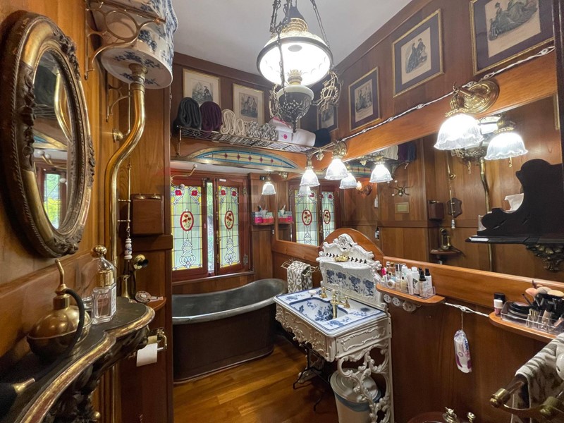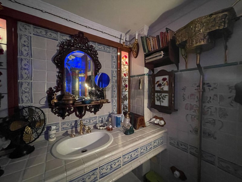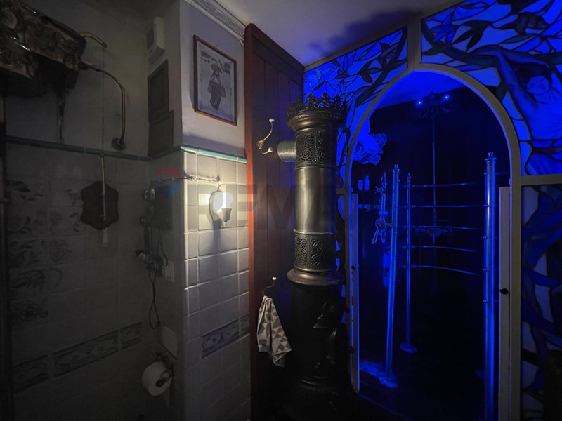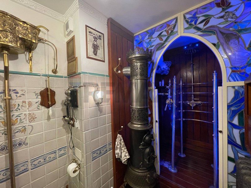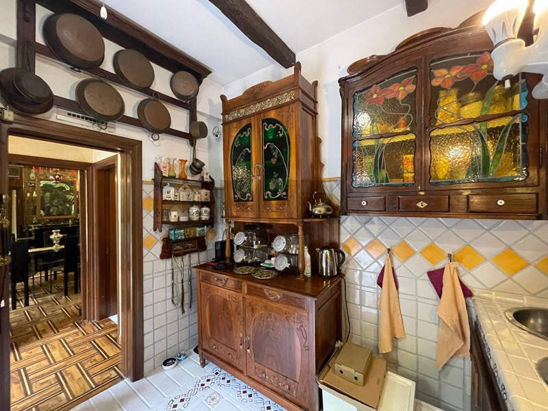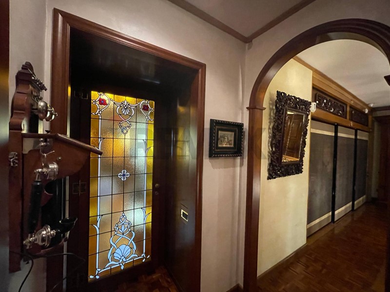 L'appartamento è abbellito da ampie finestre e porte con vetrate artistiche policrome a piombo.