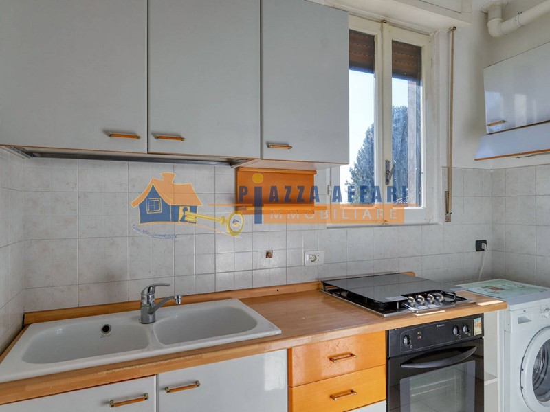 Laccesso avviene tramite scala comune che conduce al balcone privato, dal quale si entra direttamente nellabitazione. Lingresso si apre su un comodo disimpegno che distribuisce in modo funzionale tutti gli ambienti: una spaziosa zona giorno, un pratico cucinotto separato, una camera matrimoniale e un bagno finestrato con doccia.