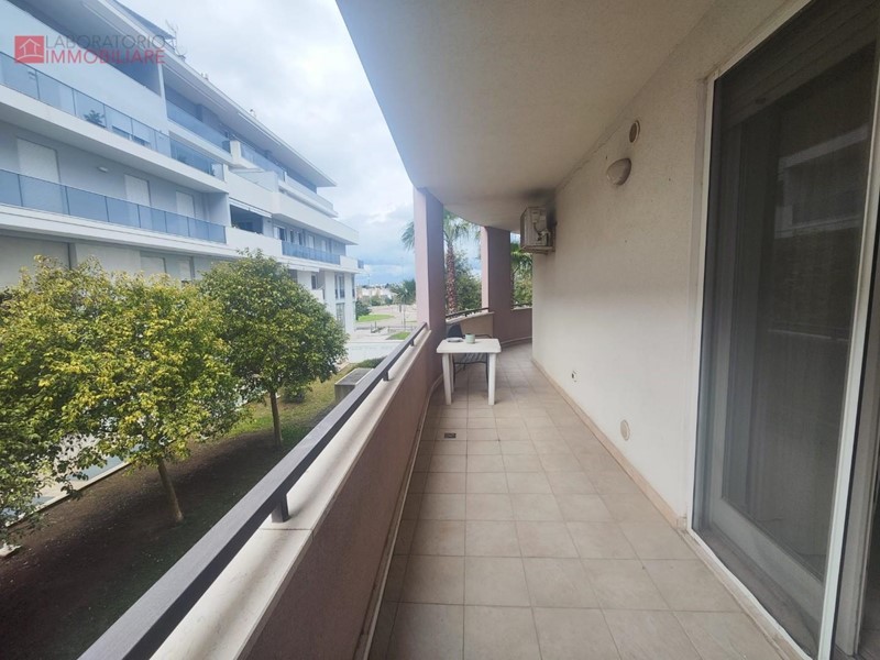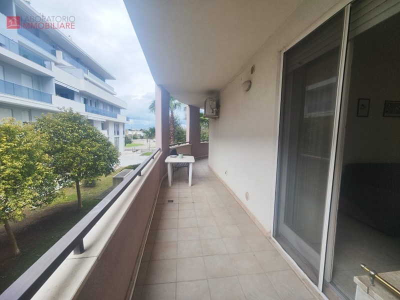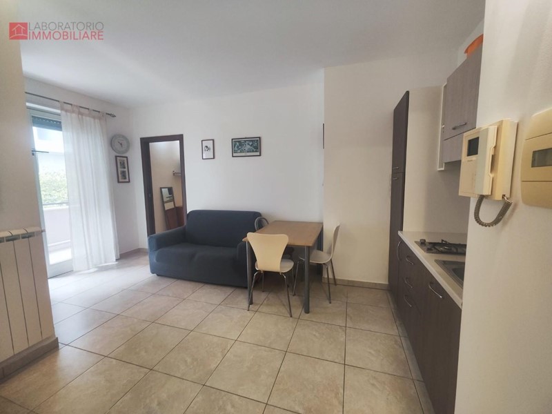 L’appartamento è composto da ingresso‑soggiorno con angolo cottura, piccolo disimpegno, camera da letto e servizio con doccia. Completa la soluzione un ampio balcone, perfetto come spazio esterno vivibile.