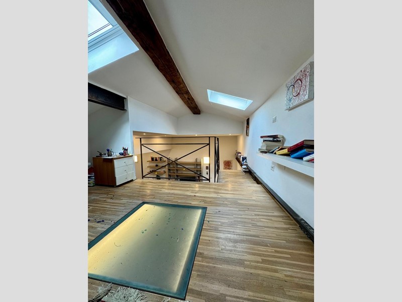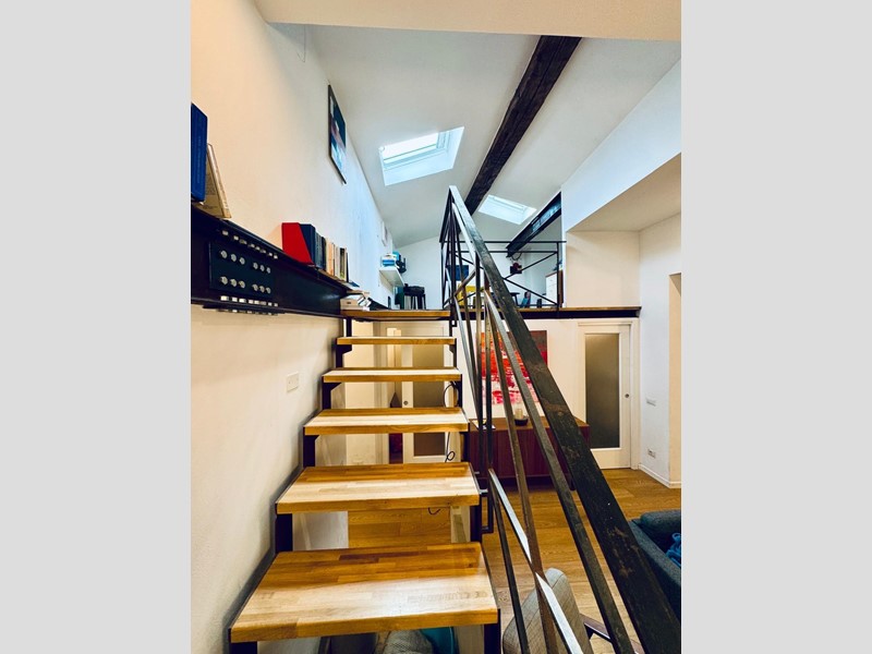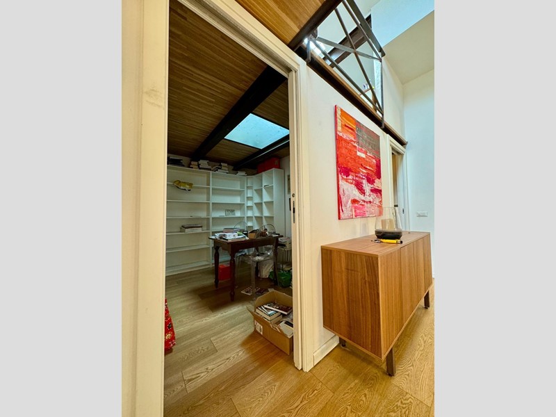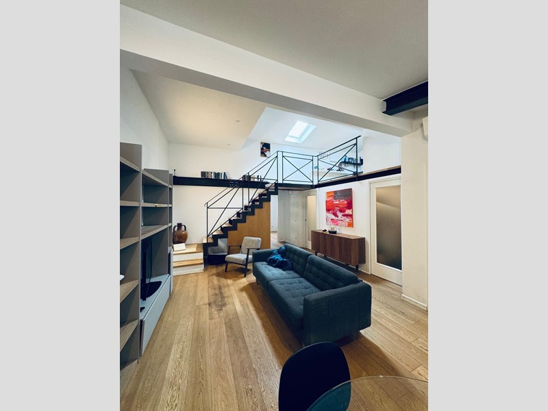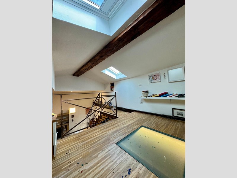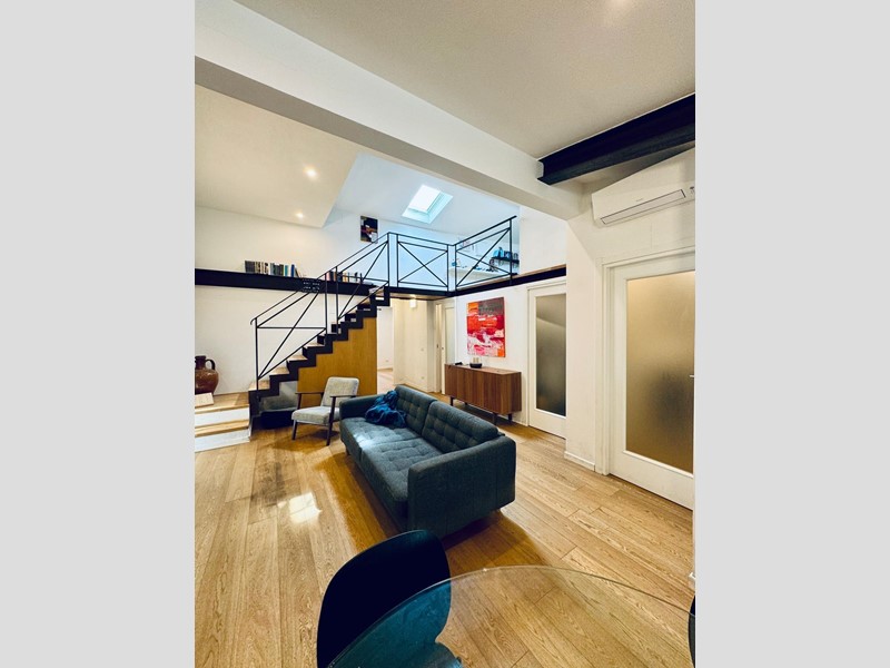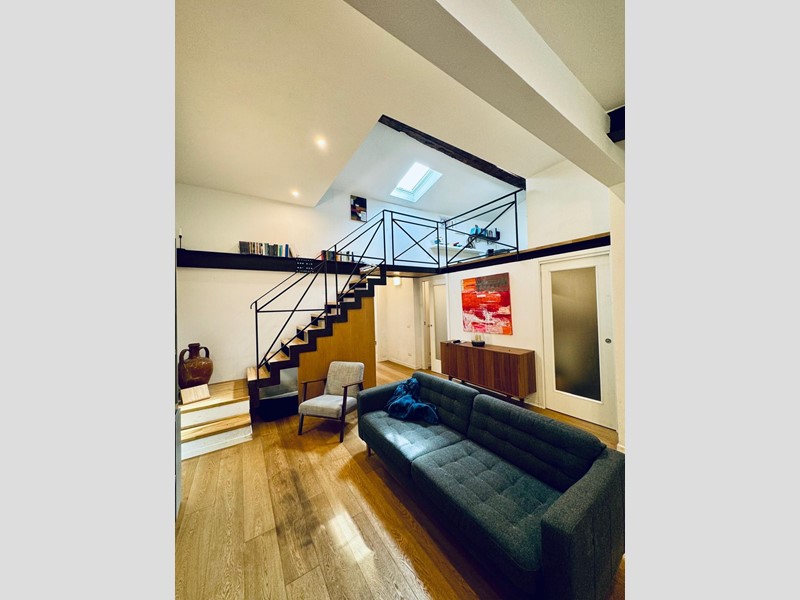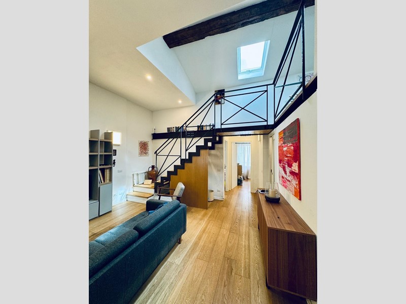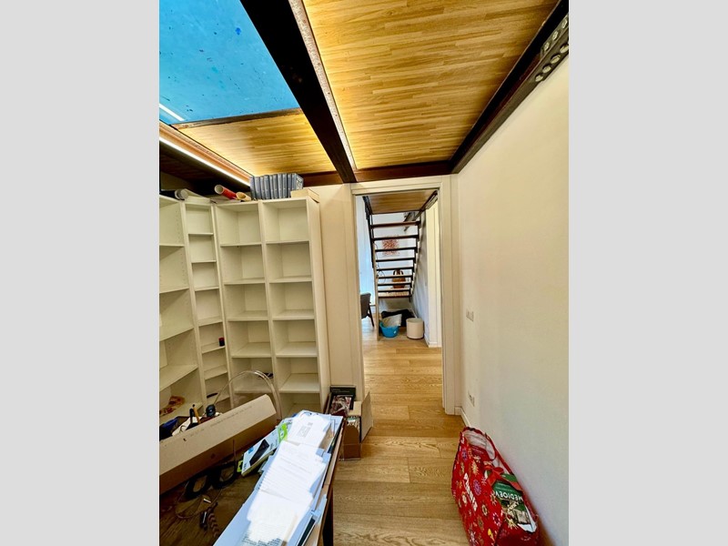 Si compone da ingresso, con locale a scomparsa ad uso guardaroba, ampio e luminoso soggiorno con affascinante soppalco, cucina a vista e ripostiglio. Bagno con doccia, locale lavanderia con servizio igienico, disimpegno, camera matrimoniale, camera singola e studio.