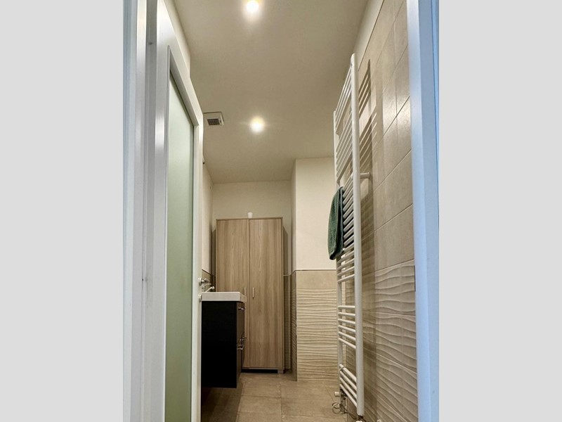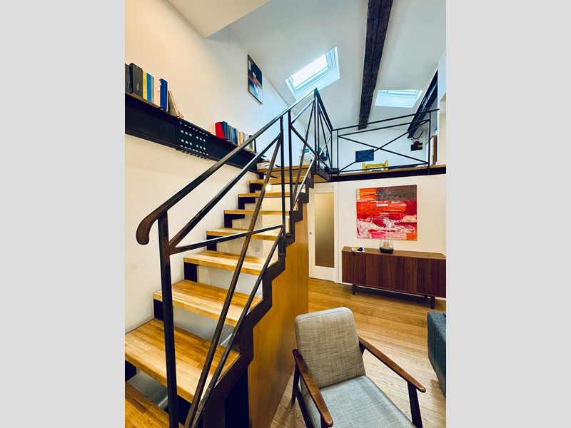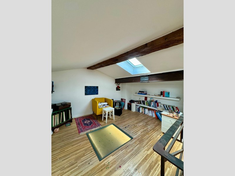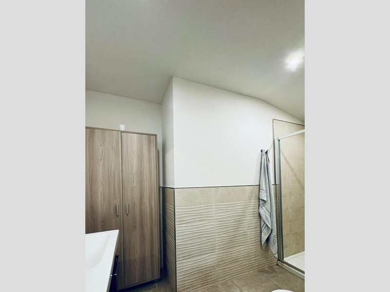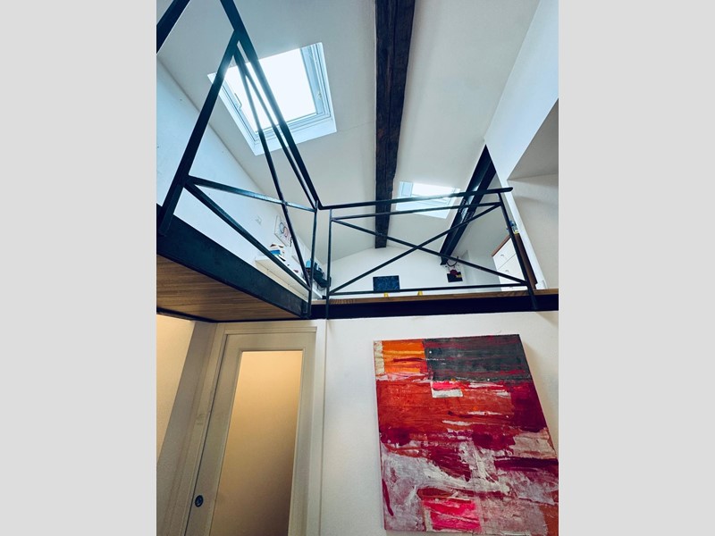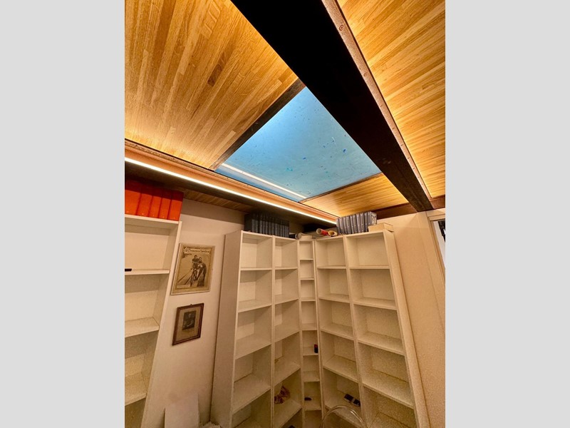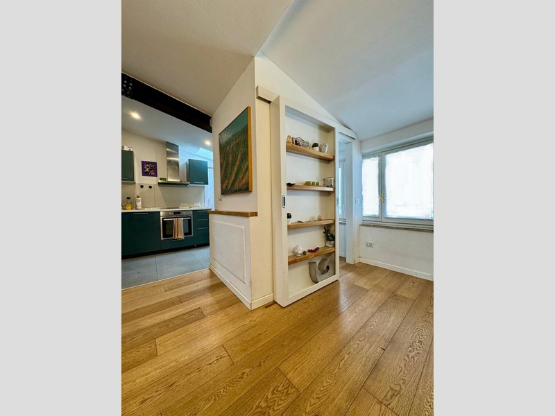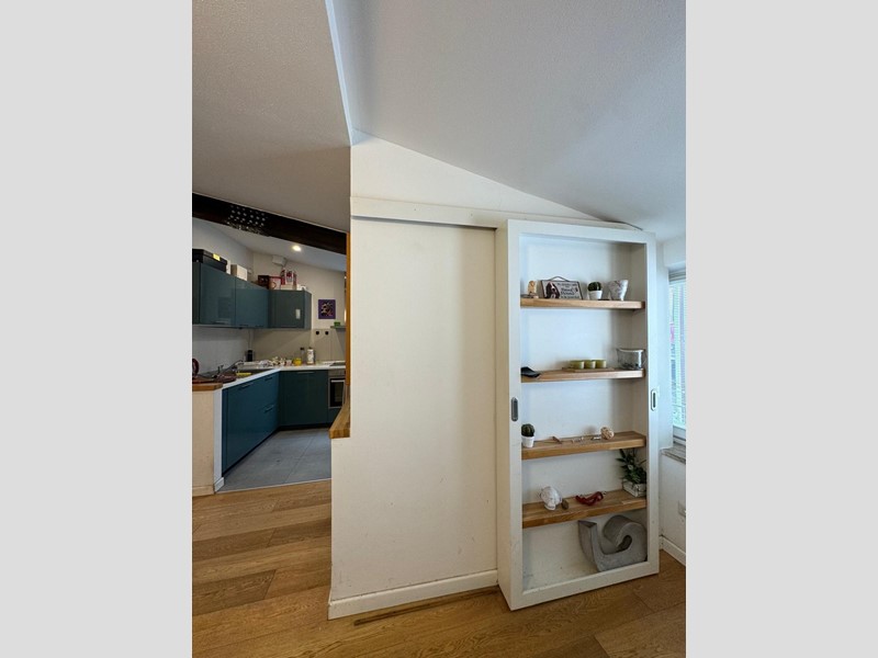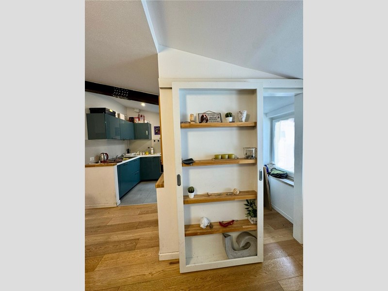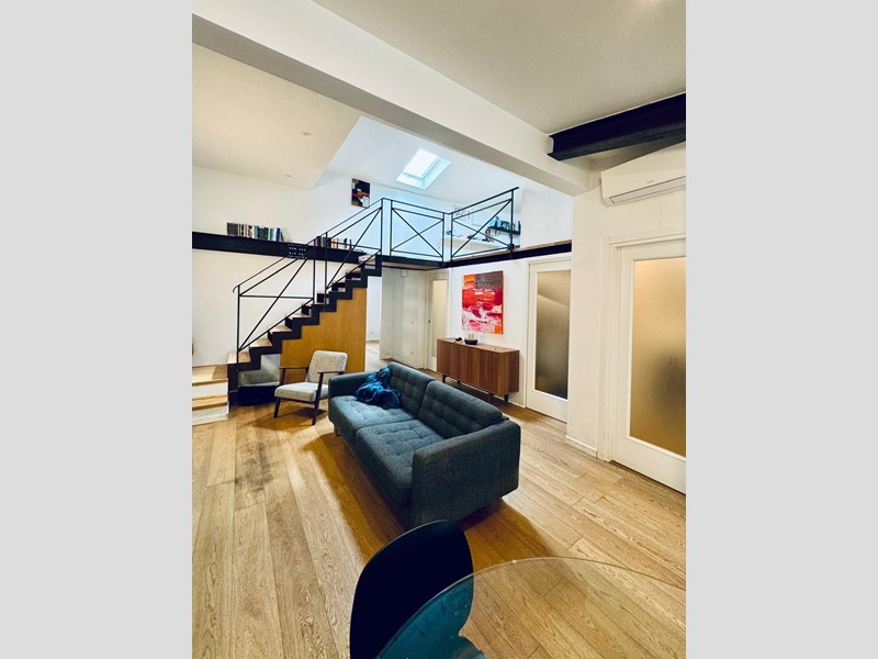 Si compone da ingresso, con locale a scomparsa ad uso guardaroba, ampio e luminoso soggiorno con affascinante soppalco, cucina a vista e ripostiglio. Bagno con doccia, locale lavanderia con servizio igienico, disimpegno, camera matrimoniale, camera singola e studio.