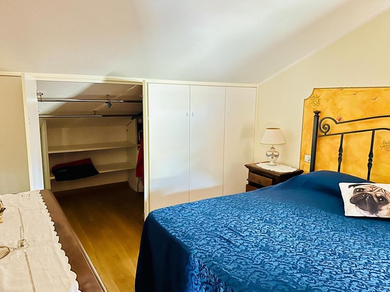 Vendesi appartamento al secondo e ultimo piano disposto su due livelli. Al piano secondo ampia zona giorno con angolo cottura e terrazza, antibagno e bagno di servizio. Al piano superiore mansardato vari locali accessori dai quali si è ricavato un disimpegno centrale, una camera con letto matrimoniale, una camerina, un bagno con doccia finestrato, alcuni locali sottotetto uso ripostiglio e una ampia terrazza. Completa la proprietà un garage al piano terra con posto auto. Impianto di riscaldamento autonomo a metano. Libero da subito. Classe energetica: G - Rif. GA441.