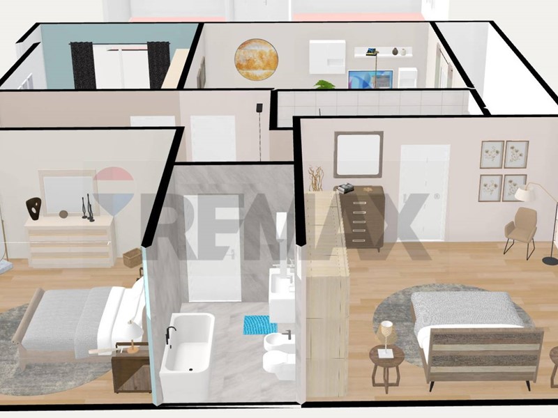 Il contesto è ordinato e pulito, con alcuni interventi di manutenzione straordinaria già effettuati (ascensore recente e videocitofono), e per poter sfruttare al meglio le potenzialità e gli spazi lappartamento, seppur già abitabile, con alcuni interventi di ristrutturazione potrebbe anche essere facilmente trasformato in un quattro locali (come si può vedere nelle foto di rendering presenti nellannuncio), trasformando lattuale cucina in terza camera, ed il soggiorno in zona giorno con cucina a vista.