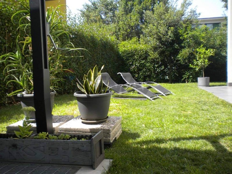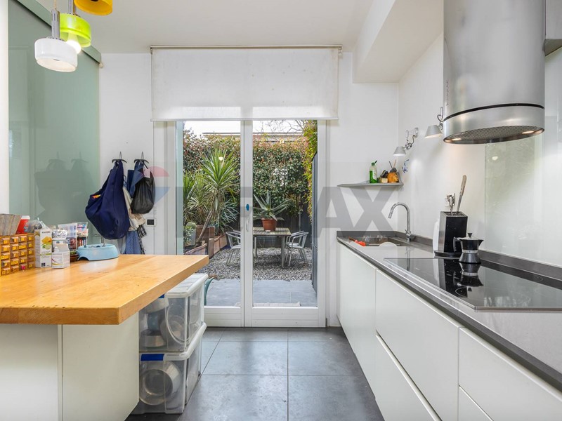 Il giardino, perfettamente curato, ospita alberi pregiati come un ulivo e un melograno, ed è dotato di un impianto di irrigazione con cisterna per la raccolta dellacqua piovana. L'immobile offre inoltre un'elevata efficienza energetica grazie all'impianto geotermico a pavimento per il riscaldamento e il raffrescamento, supportato dall'impianto fotovoltaico condominiale. Le finiture di pregio comprendono infissi in PVC con doppi vetri, tapparelle e tendaggi elettrici su tutte le finestre a tutta altezza, oltre a un avanzato sistema di domotica e fibra ottica con linea telefonica.