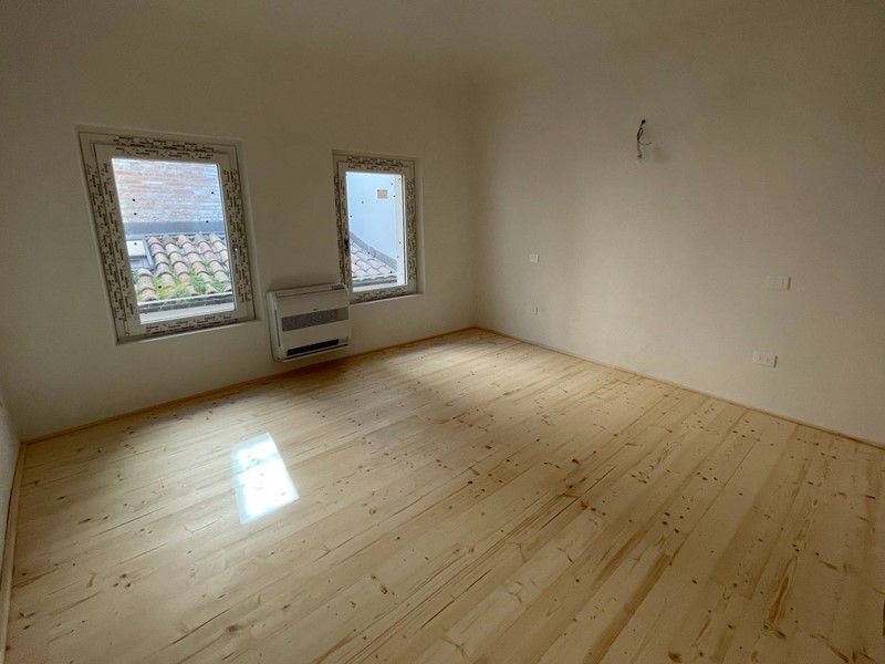 La residenza si compone al suo interno di un ampio salone affrescato e luminoso con cucina a vista, una comoda stanza collegata al salone sempre con affaccio su via Branca che potrebbe essere adibita a cucina abitabile (già con predisposizione agli impianti) o terza camera/studio, un disimpegno che conduce ad un bagno completo di angolo lavanderia, un ulteriore ampio disimpegno utile per armadiature o zona computer, due camere grandi di cui la padronale con affreschi e con annesso ampio bagno dotato di spogliatoio. Il tutto completamente ristrutturato con pavimento in legno (abete bianco austriaco) e con impianto di riscaldamento e raffrescamento autonomi ed elettrici a pompa di calore.