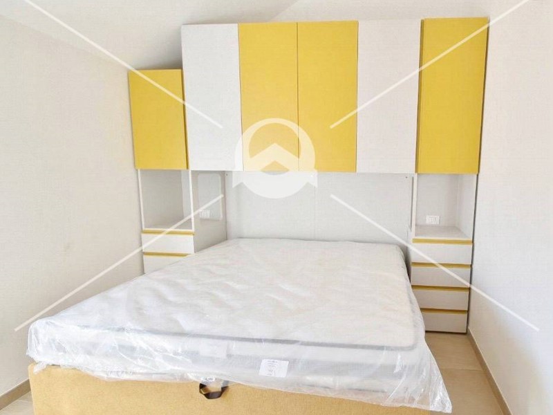 L'appartamento è composto da un ampio soggiorno living con angolo cottura, due camere matrimoniali, bagno con finestra e balcone.