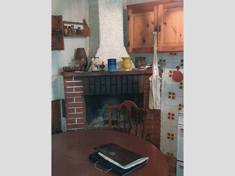 Piano Terra: ingresso indipendente, cucina con caminetto a legna, soggiorno, bagno e scala di collegamento al piano superiore;