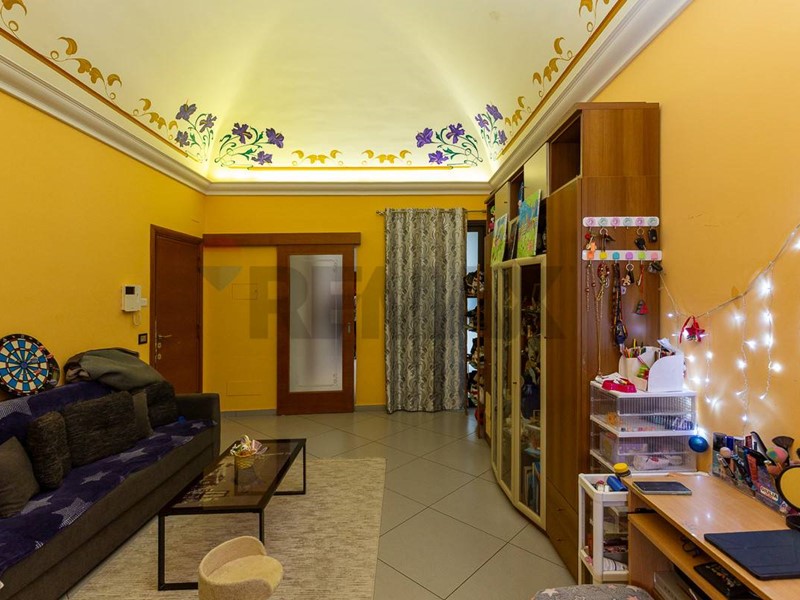 Accediamo all'appartamento direttamente su un comodo salone che tramite una porta scorrevole comunica direttamente con l'ampia cucina abitabile con affaccio su via Consolazione, sempre tramite il salone accediamo al corridoio che collega, il bagno la cameretta, la camera matrimoniale con cabina armadio e tramite una scala accediamo al piano superiore dov'è presente un'altra cameretta e il bagno.