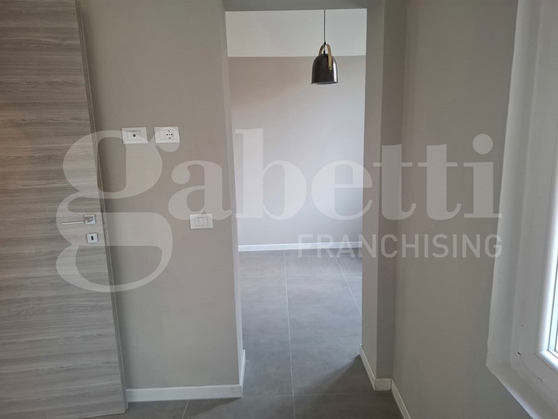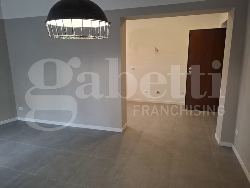L'alloggio, posto al secondo piano di una palazzina degli anni sessanta, è ubicato in un contesto residenziale caratterizzato da un elevato insediamento abitativo. Accedendo alla proprietà, si viene accolti da un'area d'ingresso prospicente alla zona destinata a cucinotto indipendente, affacciato sulla zona pranzo-soggiorno, anch'essa separata e dotata di ampie finestre che garantiscono luminosità agli spazi.