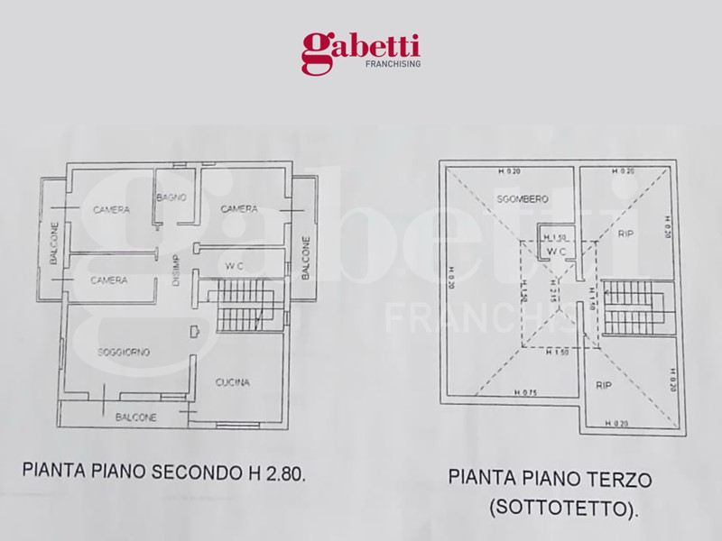 L'immobile si trova al secondo piano servito da ascensore esterno ed occupa l'intero piano, è composto da ampia sala di oltre 30 mq., cucina separata, camera matrimoniale, camera doppia, camera singola, 2 bagni e tre balconi, questo appartamento dispone inoltre di un garage al piano terra. Un valore aggiunto è rappresentato dalla mansarda situata al terzo ed ultimo piano, ampia quanto l'appartamento e raggiungibile dalla scala condominiale. Giardino comune. Nessuna spesa condominiale. Possibilità di acquistare a parte un ripostiglio di ampia metratura situato al piano terra.